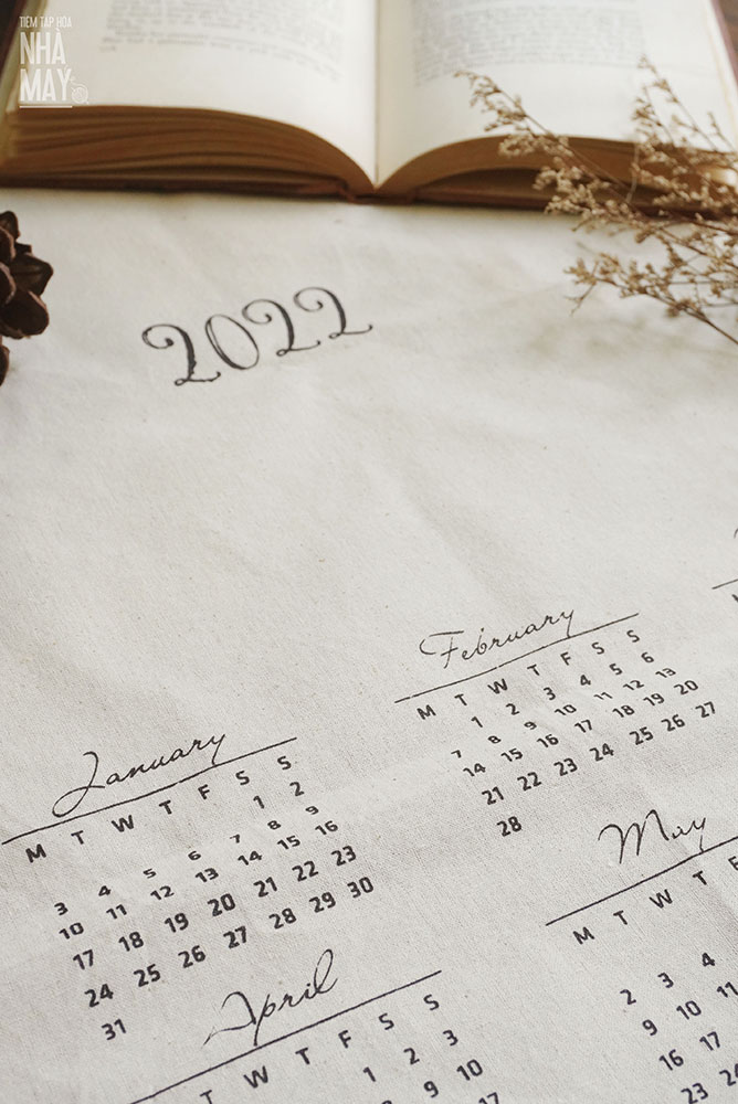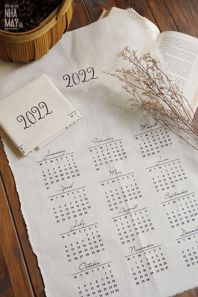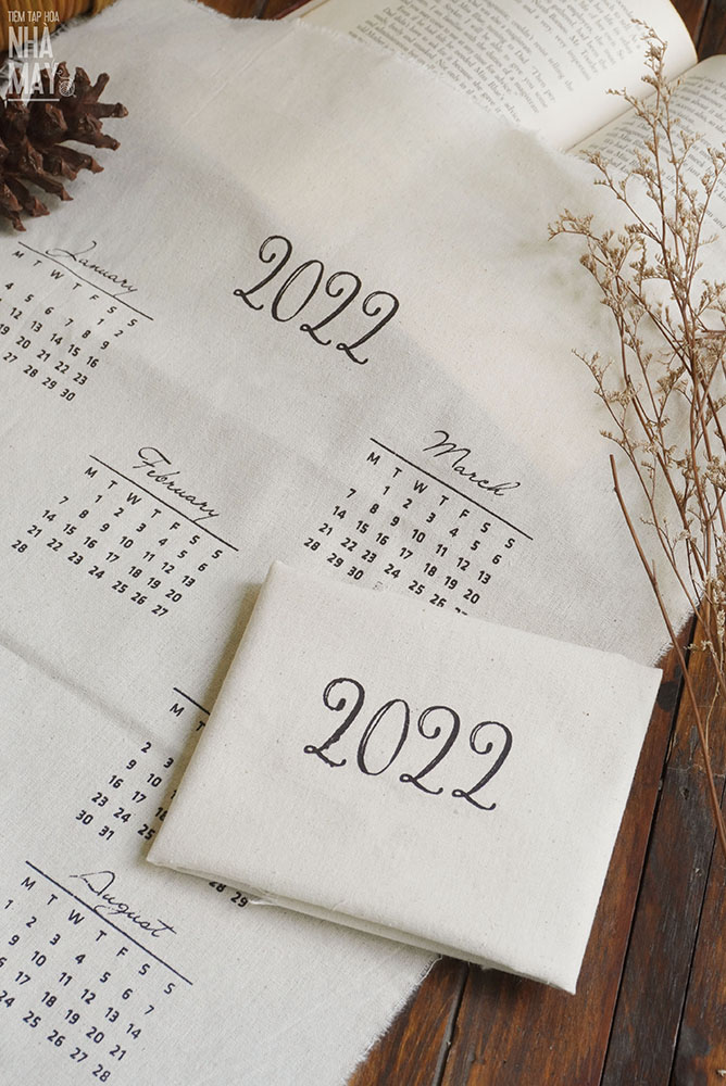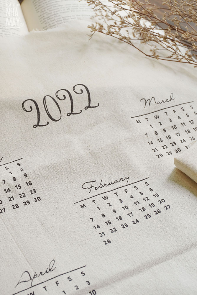 Phôi lịch vải là tấm đã in sẵn số liệu ngày tháng năm của năm 2022, có chừa lại các khoảng trống để mọi người có thể sáng tạo bằng hình thêu hoặc vẽ hay trang trí lên.