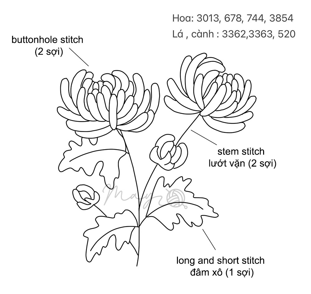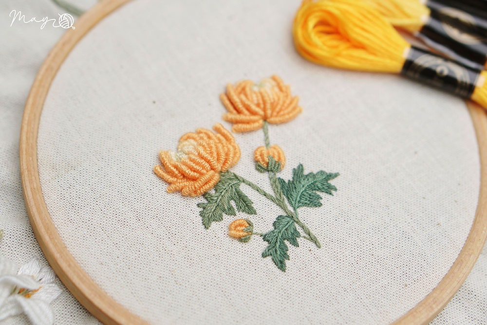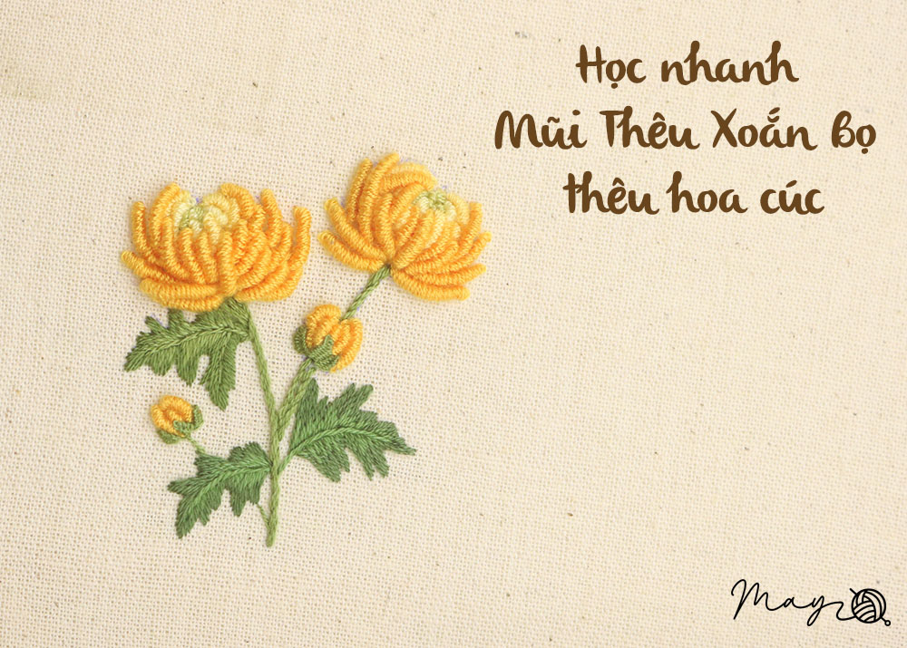 Học nhanh Mũi Thêu Xoắn Bọ thêu Hoa Cúc (có mẫu in)