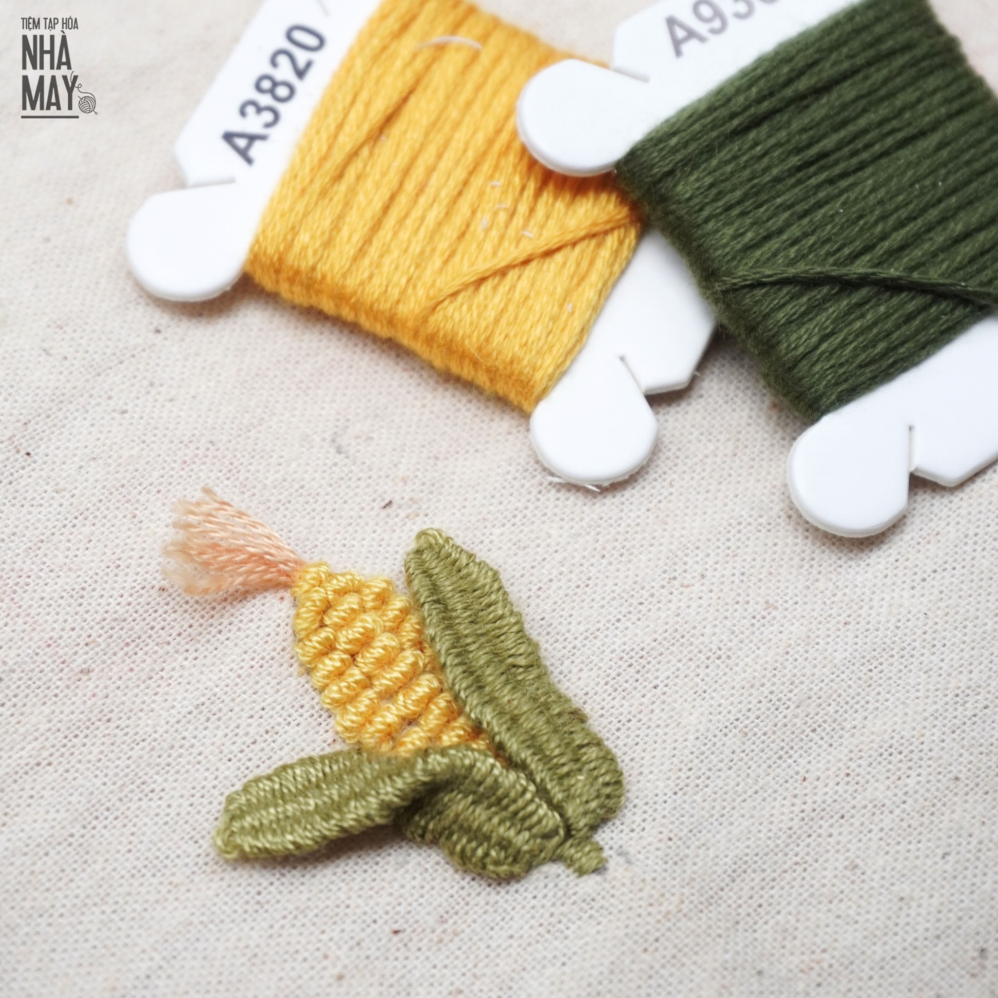 Các chị em thích hạt ngô nhiều màu có thể tùy ý chọn màu chỉ với các tông vàng khác nhau nhé, Tiệm làm hướng dẫn đơn giản cho mọi người nên chỉ dùng 1 màu chỉ thôi cho dễ theo dõi ạ.