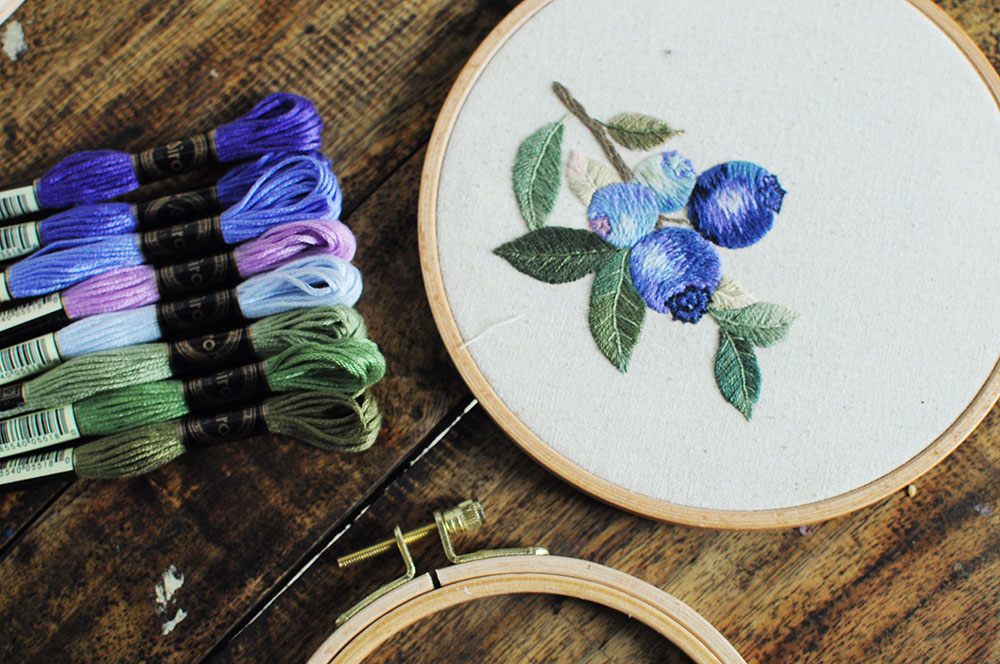 Vẫn là mũi thêu đâm xô rất đơn giản để áp dụng trong quá trình học thêu cơ bản, ứng dụng thử vào quả việt quất xem thế nào nhé!