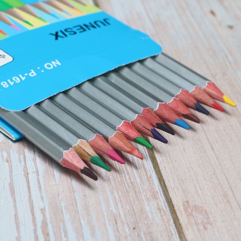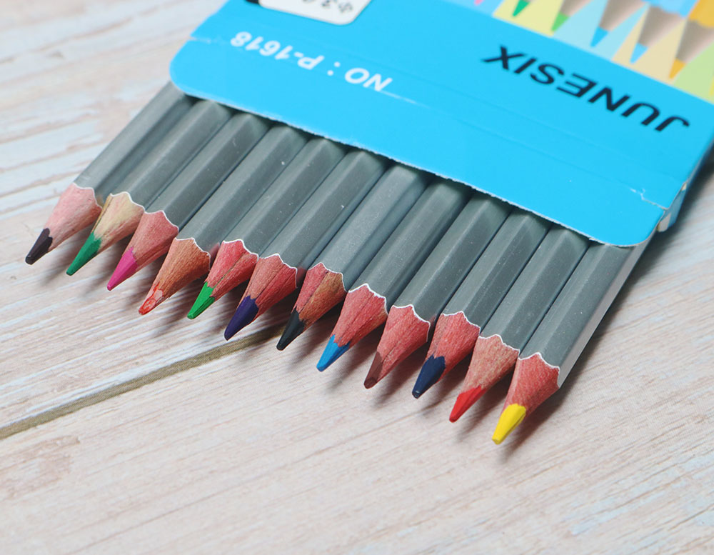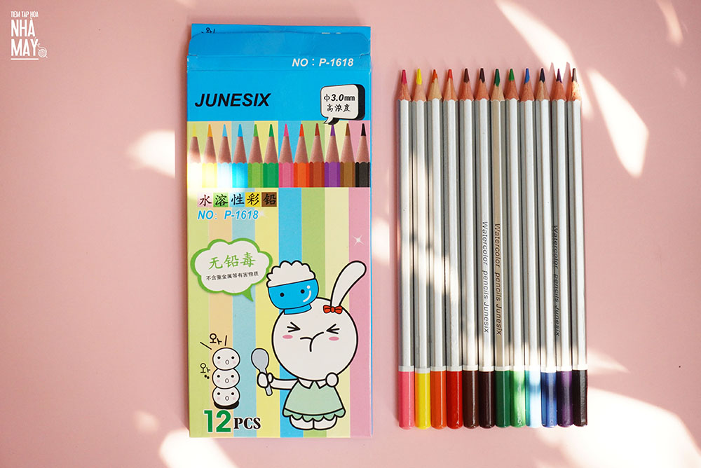 Hộp bút chì màu nước gồm 12 màu cơ bản. Bút chì dài 17.5cm, ruột 3mm, đầu chì 0.3mm.