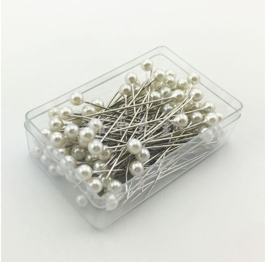 Một hộp gồm 100 kim ghim vải màu trắng dùng để cố định vải khi thiết kế, may vá, cắt may.....