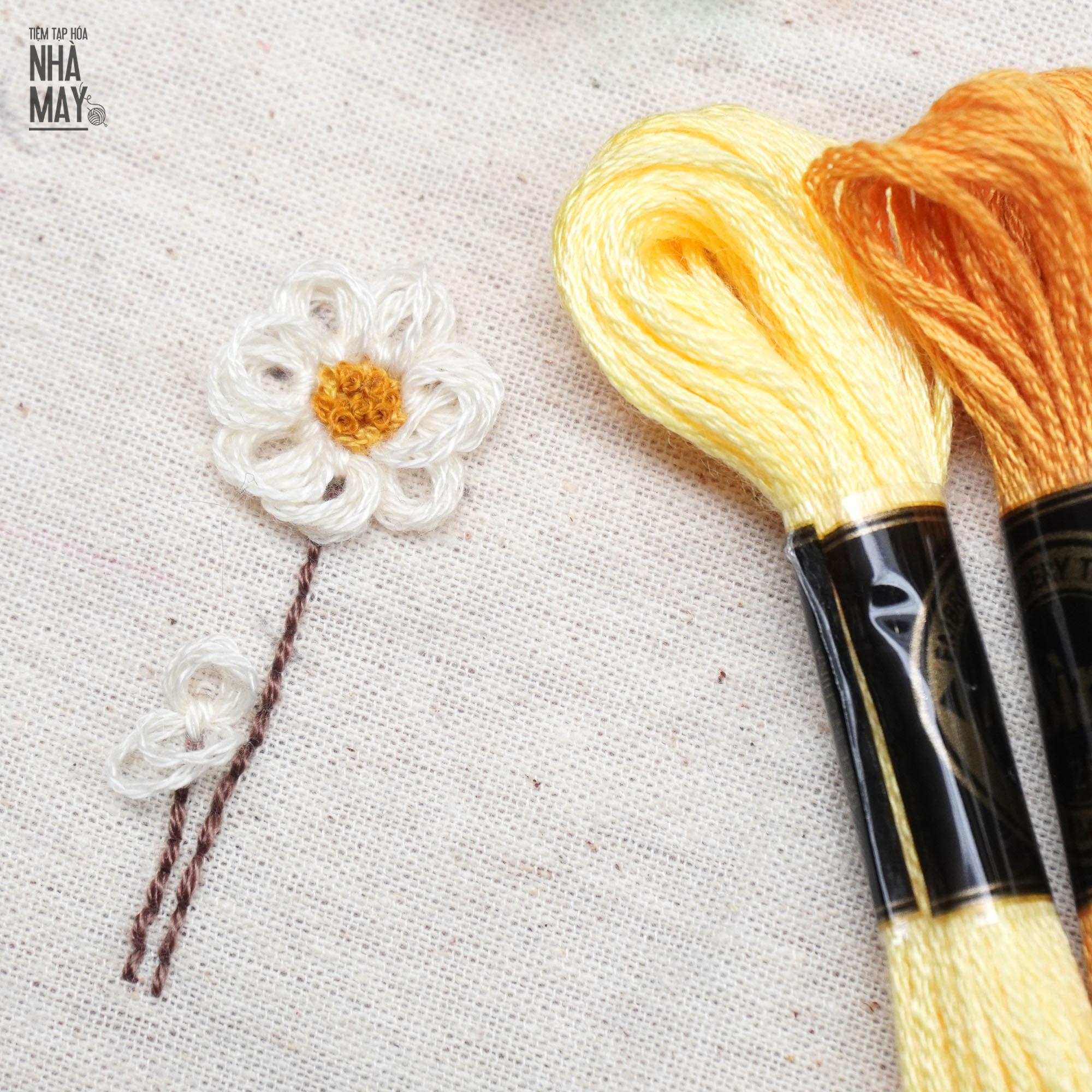 Một mũi thêu hơi lạ nhưng lại cực dễ thêu và hợp với những ngày "lười biếng" nhưng vẫn muốn có một bé hoa xinh xinh nha.