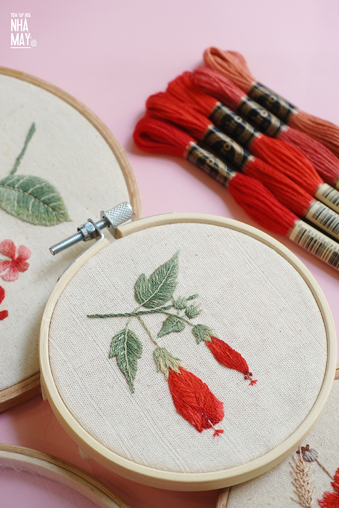 Tông đỏ dù ít xuất hiện trong các mẫu thêu của Tiệm nhưng lần nào lên vải cũng nổi bần bật cực hấp dẫn. Các chị em cũng đam mê sắc màu thu hút hay chỉ đơn giản muốn thêu một cành hoa dâm bụt nho nhỏ thì hãy cầm kim lên cùng thêu với Tiệm nhé.