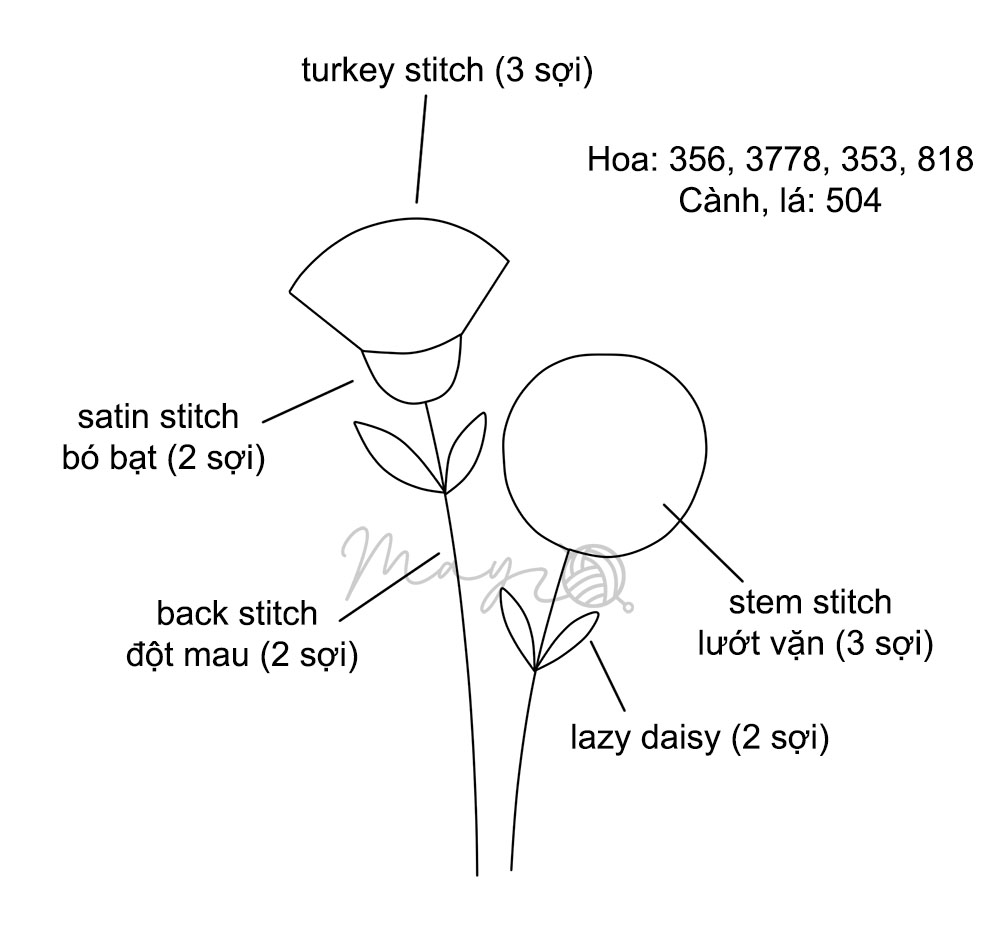 Hướng dẫn hai cách thêu đơn giản trong cùng 1 cành hoa nhí