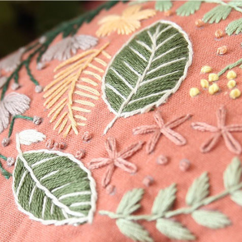 - Lá xanh đậm (góc phải), cánh hoa màu cam: Lazy Daisy Stitch