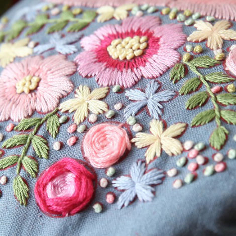 - Hoa chấm nhỏ: Thêu sa hạt (French Knot Stitch)