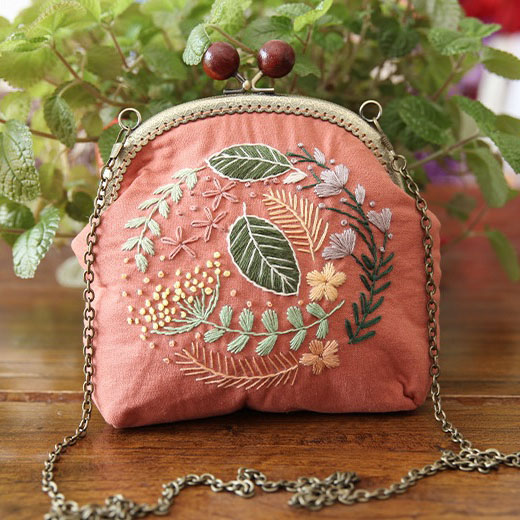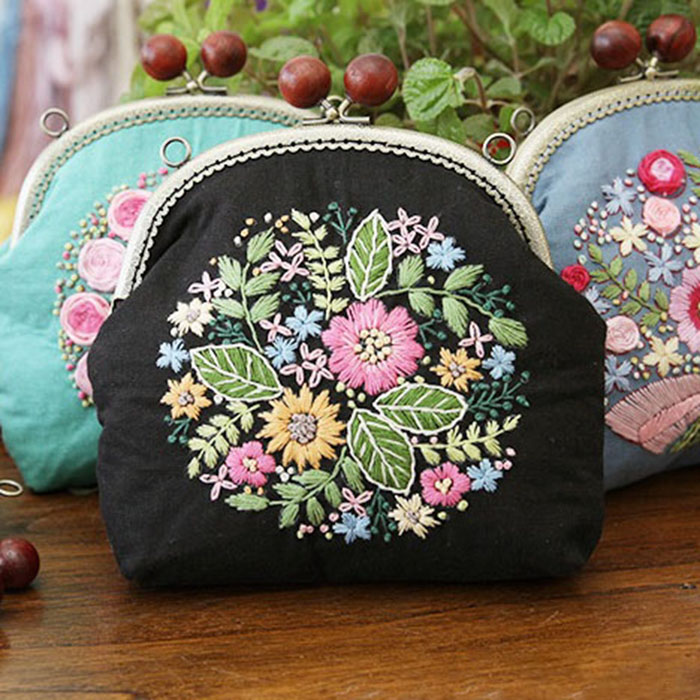 Bộ kit tập thêu đầy đủ nguyên liệu cho người mới bắt đầu có thể tự tay thêu và khâu một chiếc túi xinh cho bản thân.
