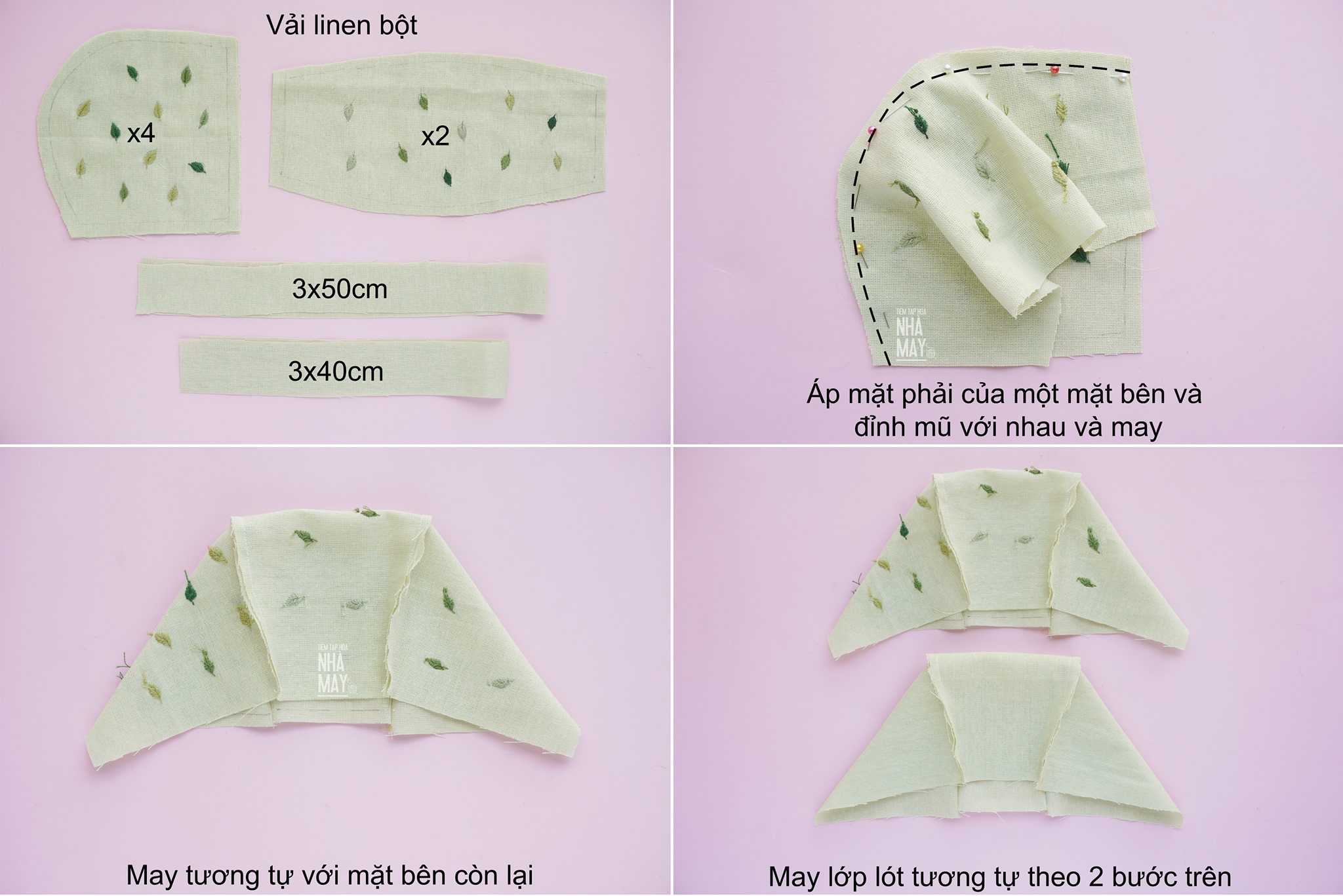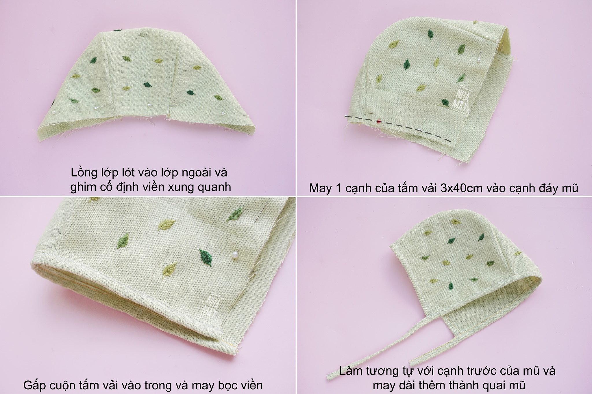Hướng dẫn làm chiếc mũ bonet đơn giản cho bé dưới 1 tuổi. Thêu thêm vài chiếc lá vào mũ là như một mầm cây di động ấy nhỉ ^^
