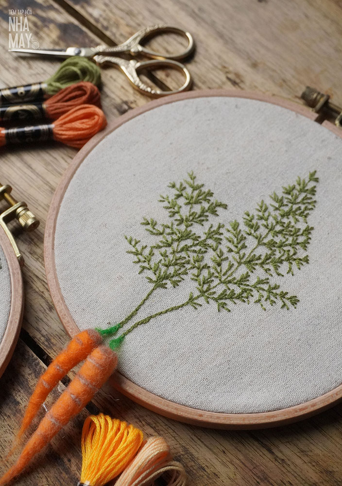 Hướng dẫn làm củ cà rốt từ chỉ thêu và len chọc