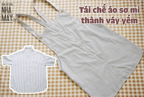 Tái chế áo sơ mi cũ thành váy yếm đơn giản