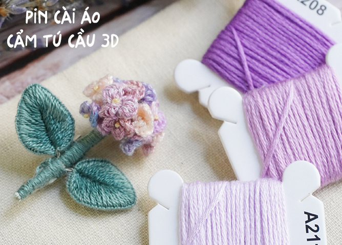Hướng dẫn làm pin cài áo bông cẩm tú cầu 3D (có mẫu in)