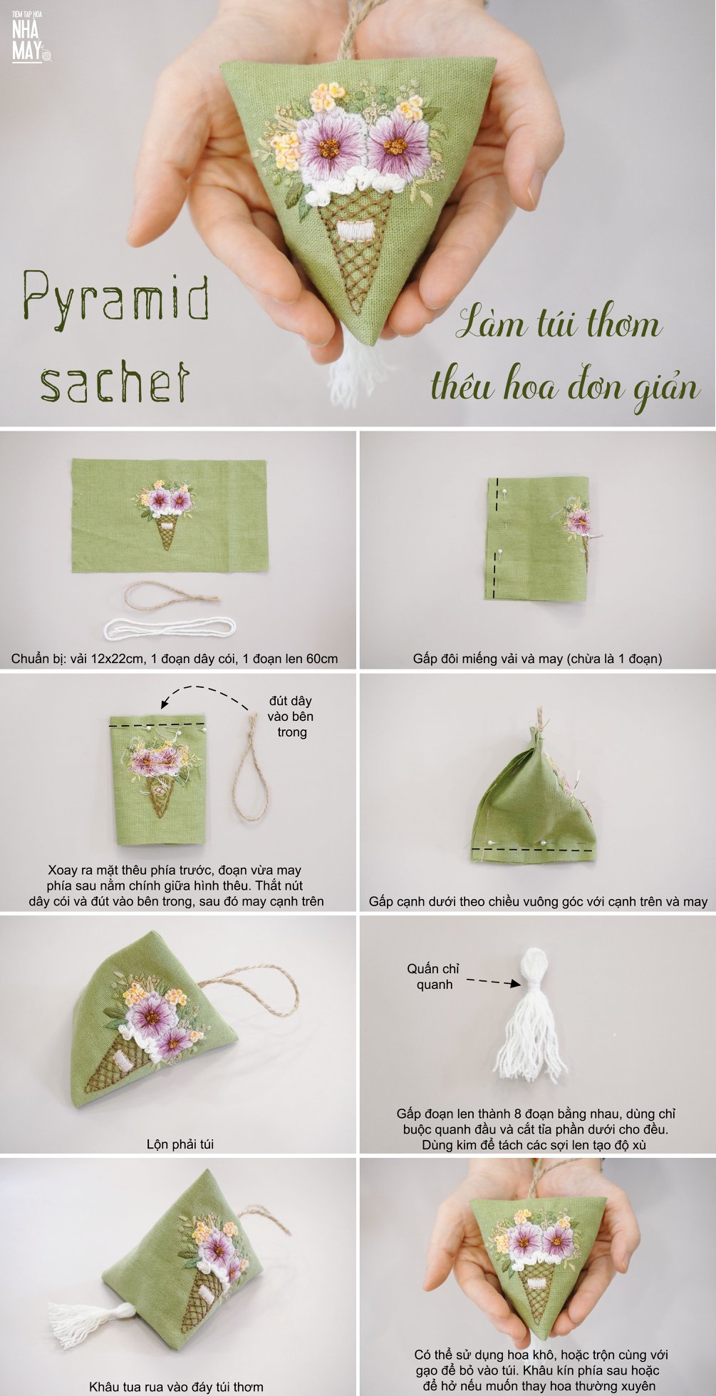 HƯỚNG DẪN LÀM TÚI THƠM THÊU HOA GẮN TUA RUA