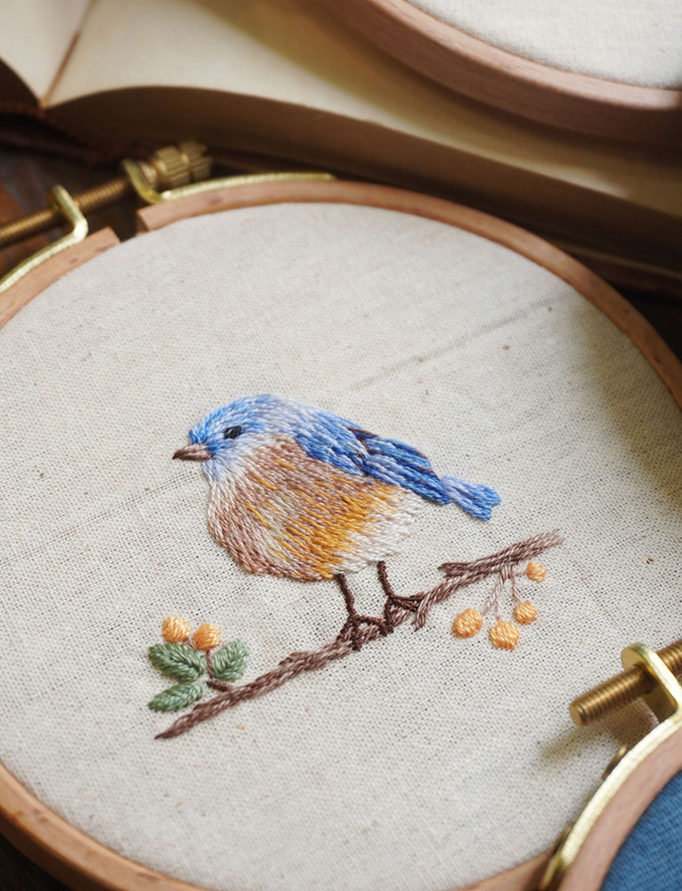Hướng dẫn phối màu và thêu một chú chim nhỏ bằng mũi đâm xô (có mẫu in)