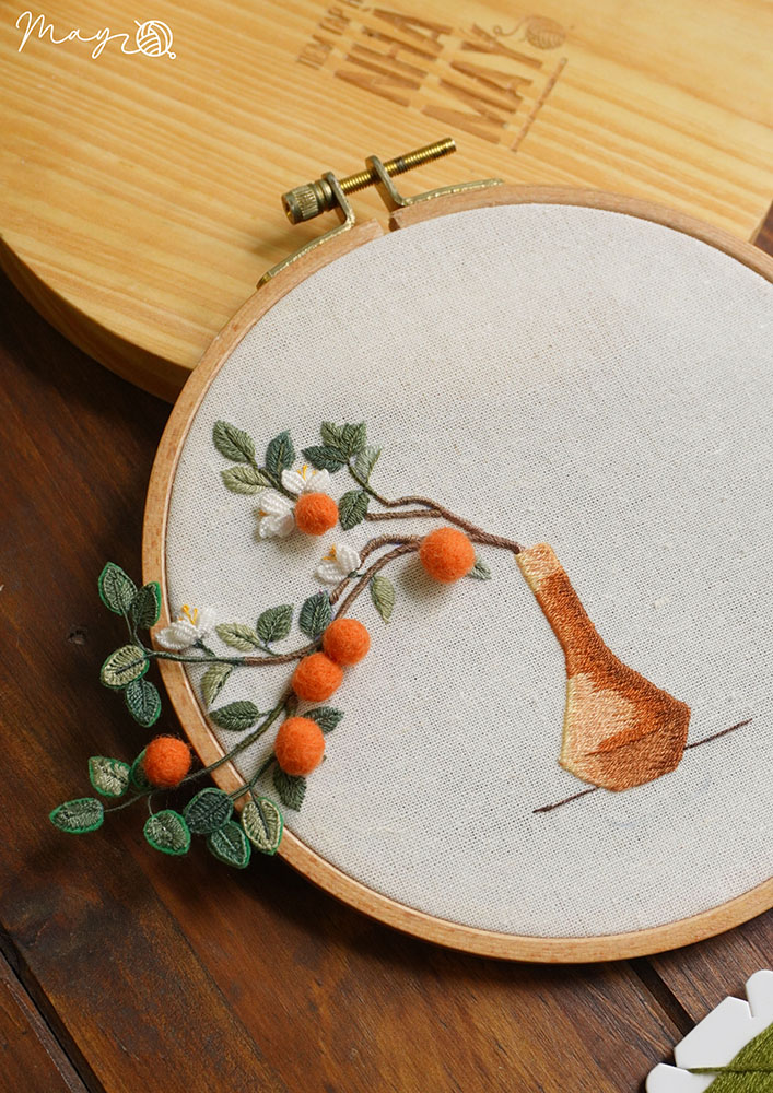 Hướng dẫn thêu bình quất đón Tết (có mẫu in)