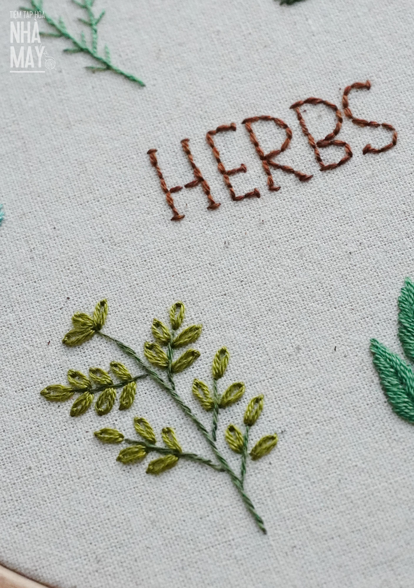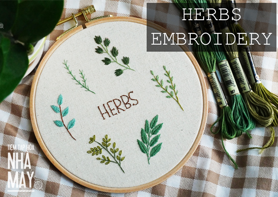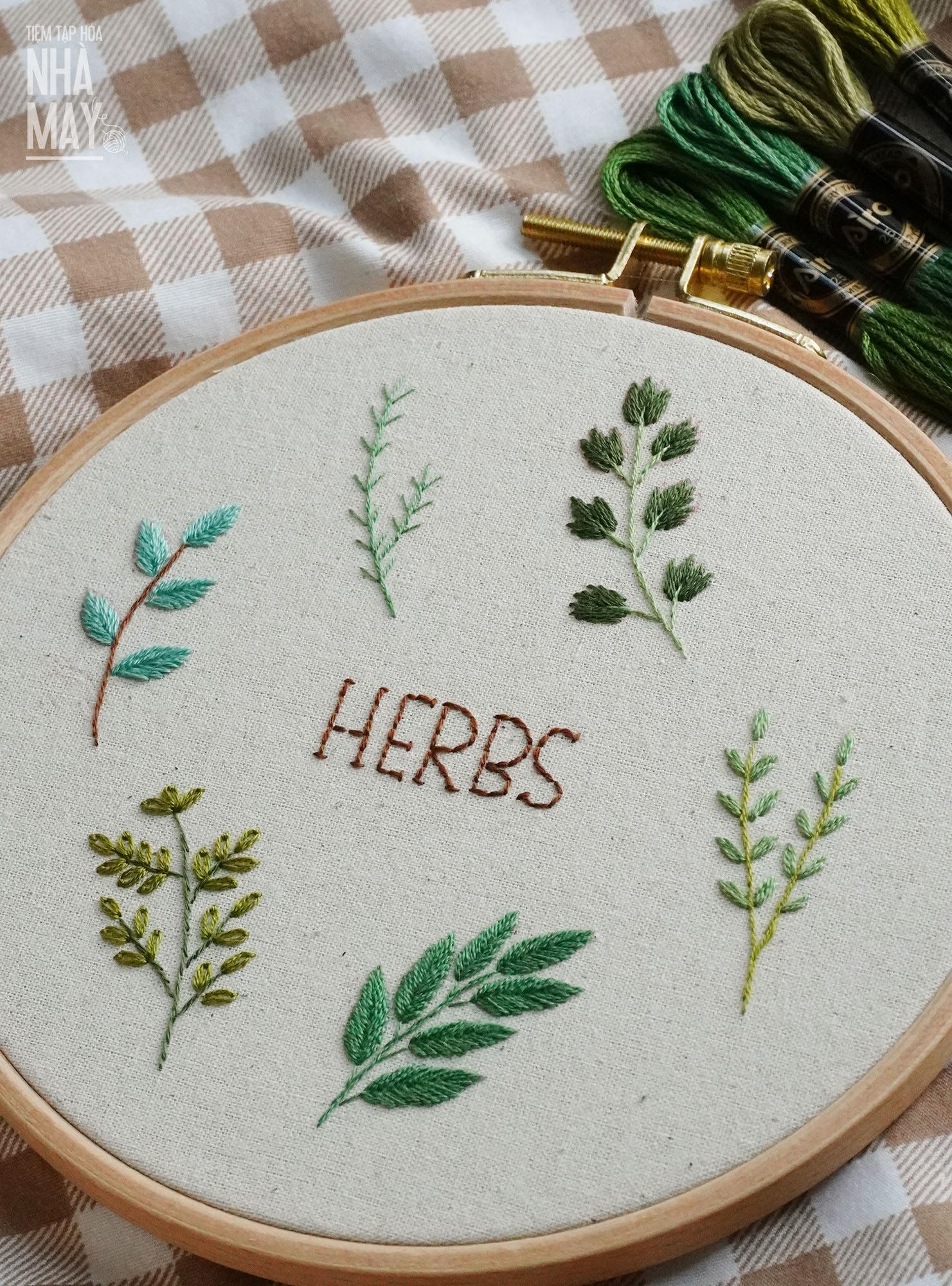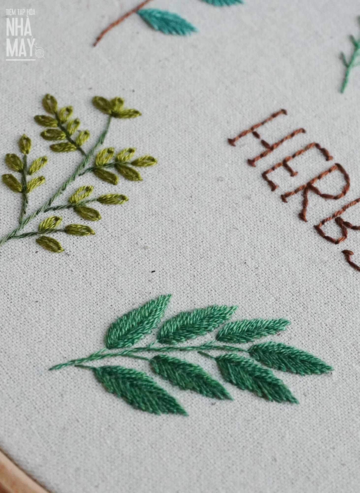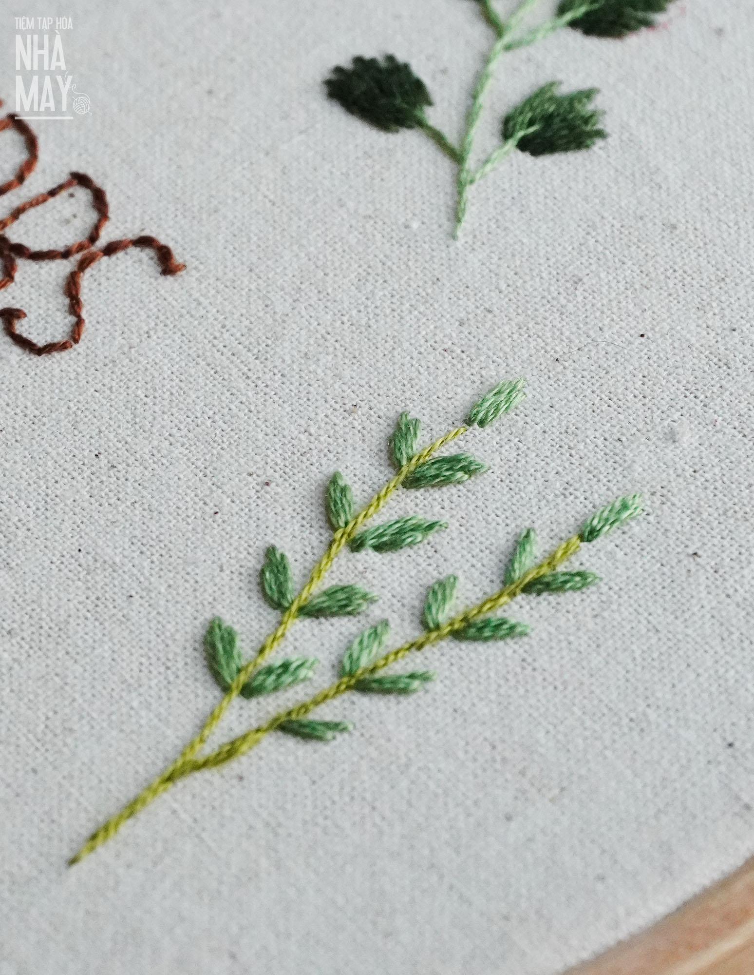 Hướng dẫn thêu cành lá thảo mộc quen thuộc cho nàng yêu bếp