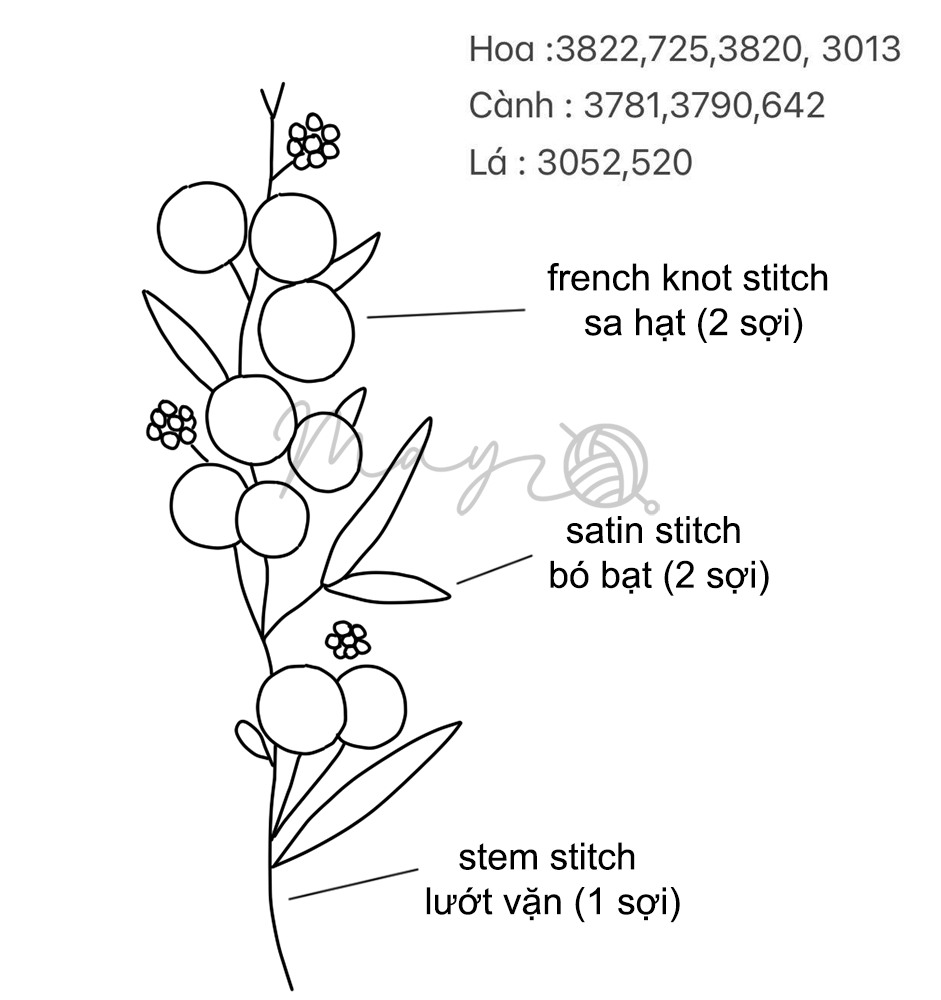 Hướng dẫn thêu cành Mimosa siêu đơn giản cho người mới bắt đầu (có mẫu in)
