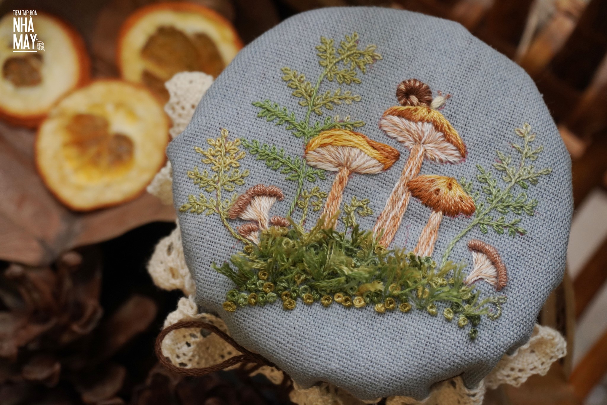 Một trong những hình thêu Tiệm nhận được nhiều yêu cầu quay video hướng dẫn nhất. Nay Tiệm phối tông xanh rêu và vàng nâu là chủ đạo.