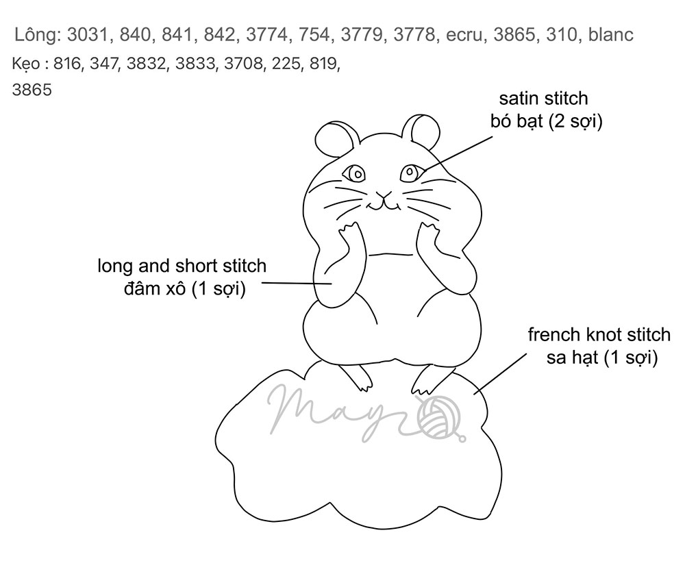 Hướng dẫn thêu chú hamster xinh xắn (có mẫu in)
