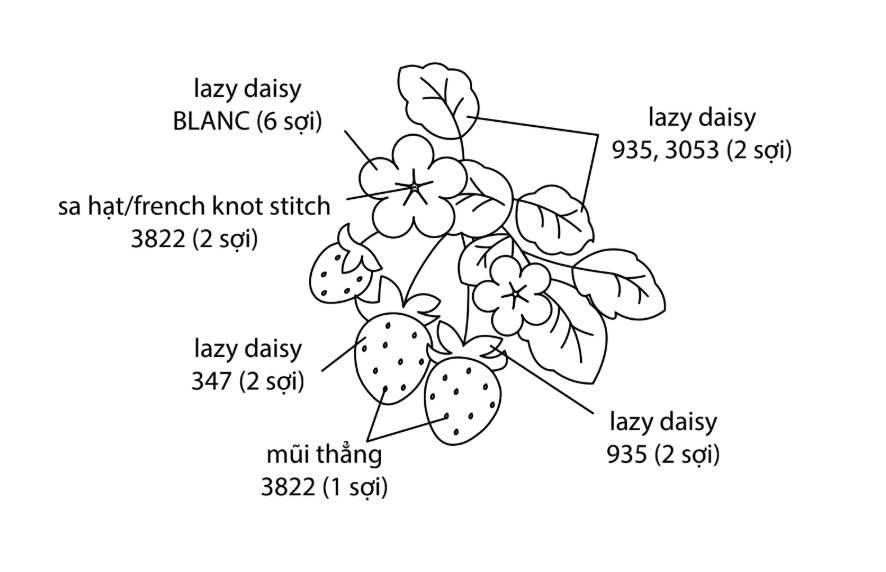 Hướng dẫn thêu chùm dâu tây với biến thể lazy daisy
