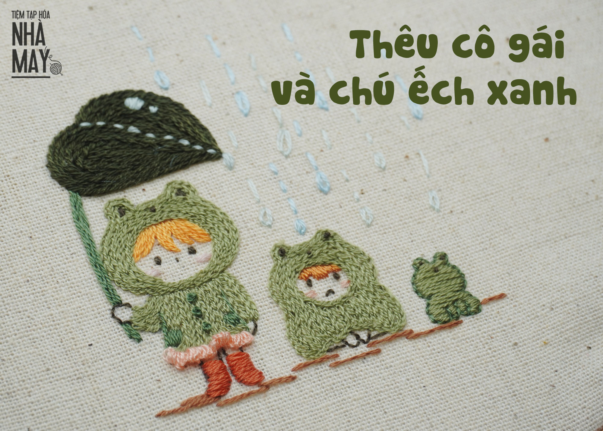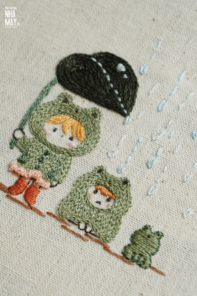 Hướng dẫn thêu cô gái và chú ếch xanh cho người mới bắt đầu (có mẫu in)