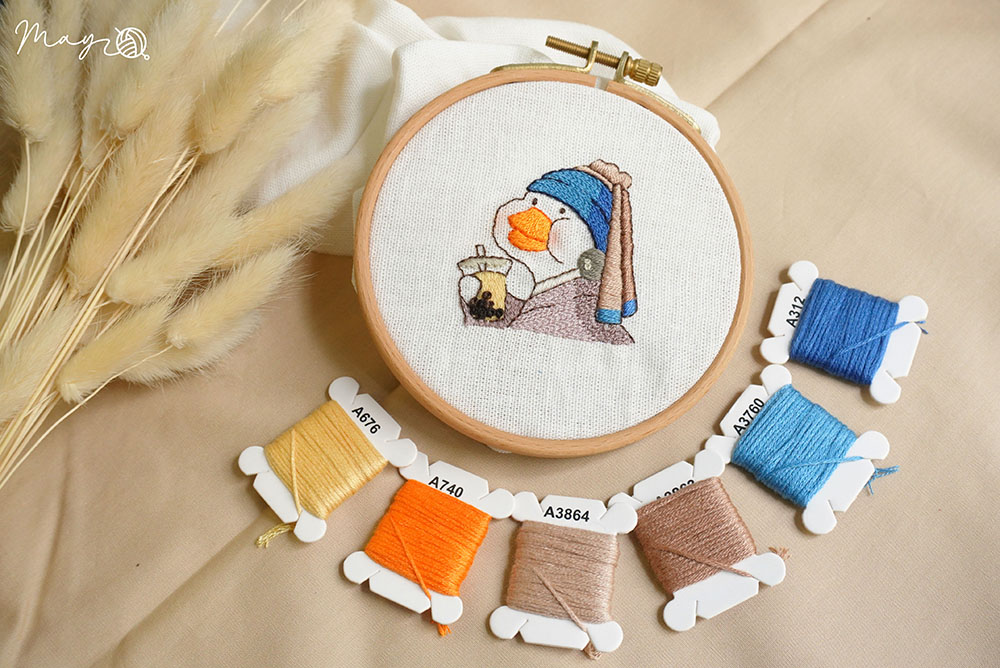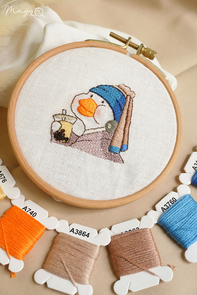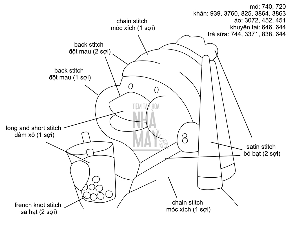 Hướng dẫn thêu cô vịt uống trà sữa (có mẫu in)