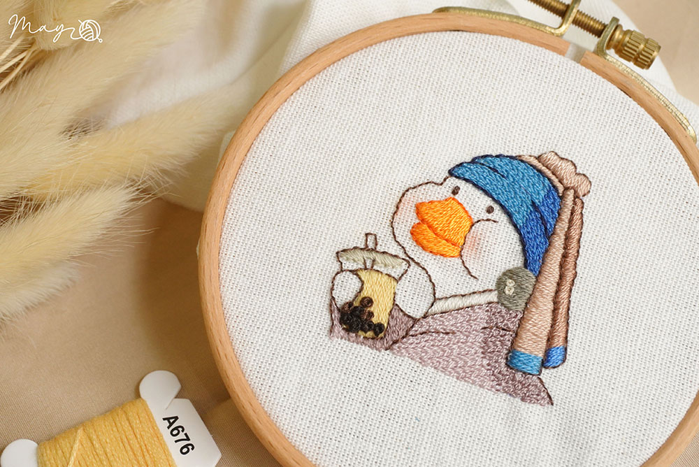 Thêu cái hình bà vịt uống trà sữa chứ không hề nói là mình đang thèm trà sữa đến mức có thể uống hẳn 2 cốc nha :((