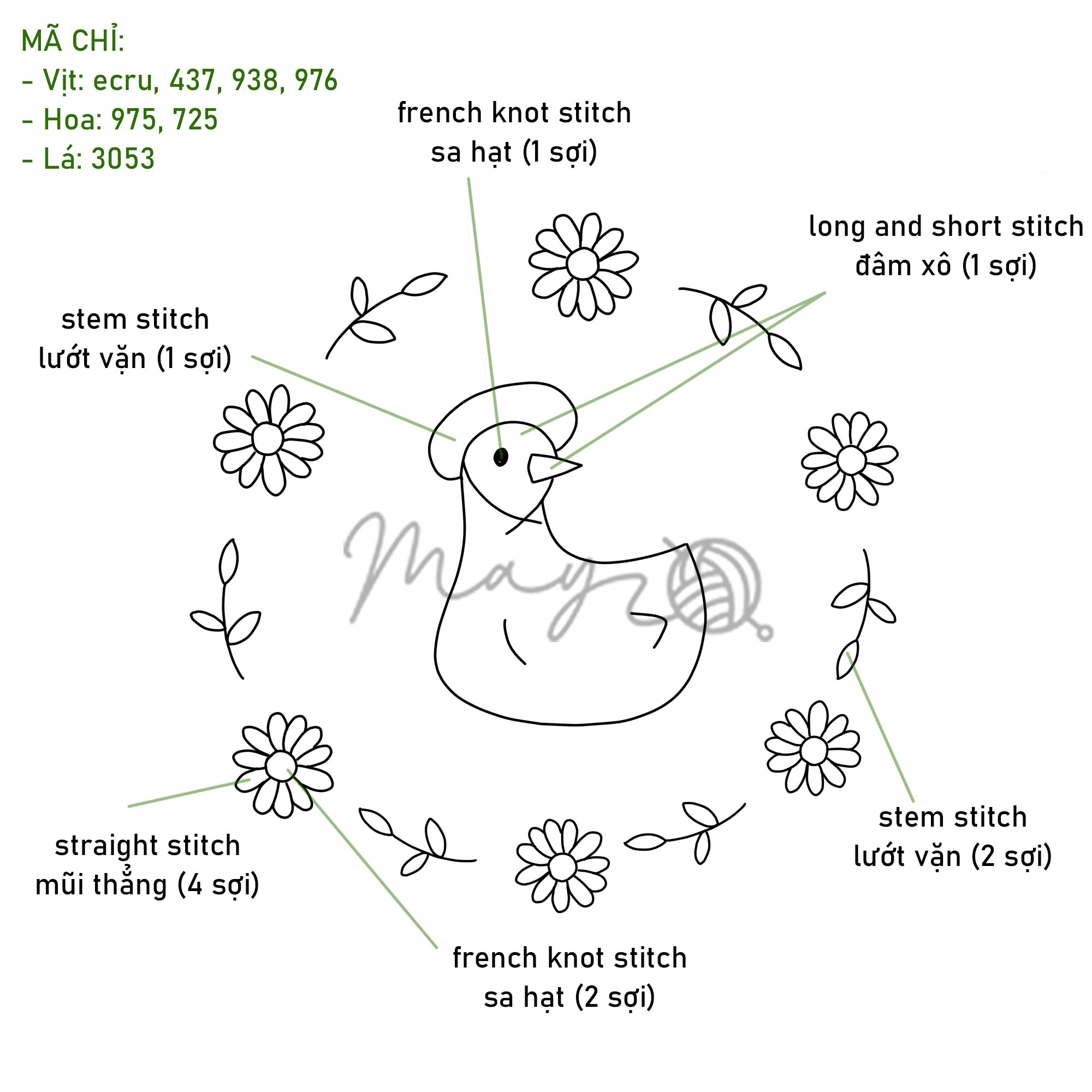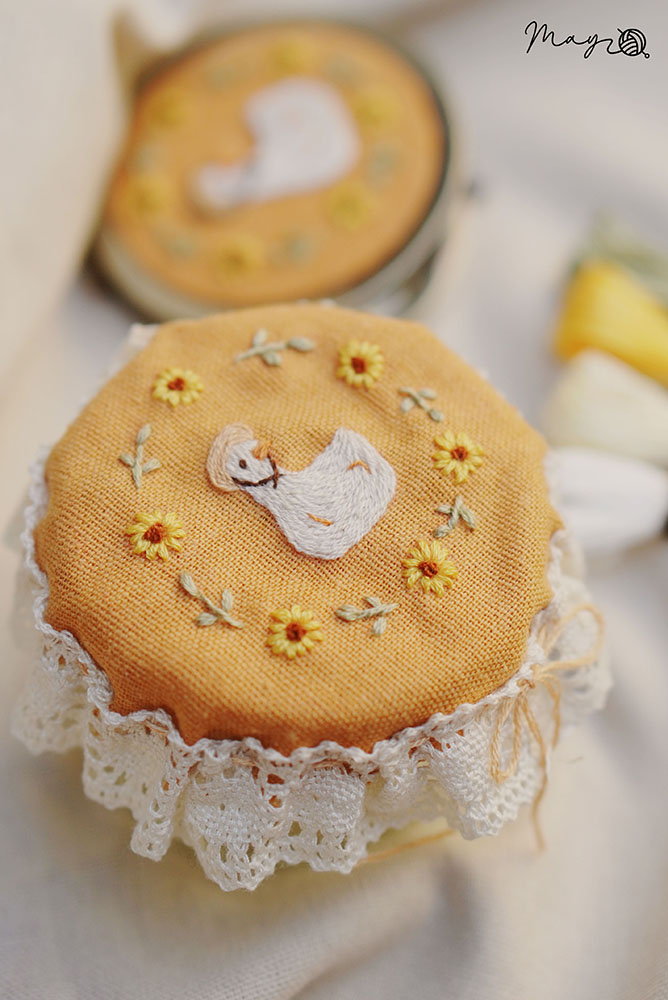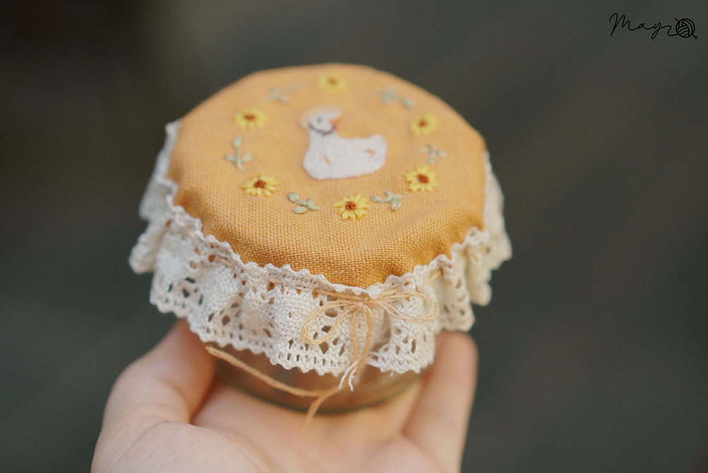 Hướng dẫn thêu con vịt làm bọc nắp lọ thủy tinh cực xinh (có mẫu in)