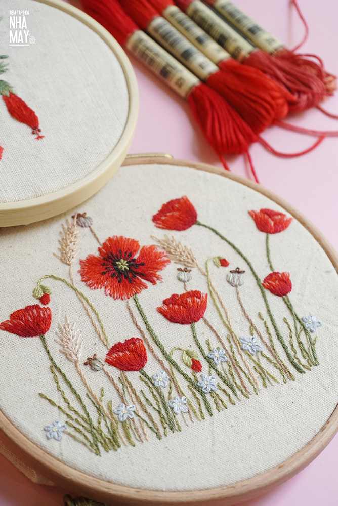 Mùa nắng rực rỡ thế này, sao có thể thiếu được sắc đỏ đặc trưng? Vậy là nhân một trưa hè tháng 7, chúng mình lại cùng nhau phối tông màu đỏ và sử dụng các mũi thêu cơ bản nhất để thêu vài bông hoa.