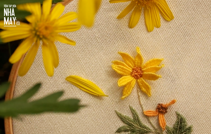 Hướng dẫn thêu hoa dã quỳ bằng mũi Woven picot (có mẫu in)