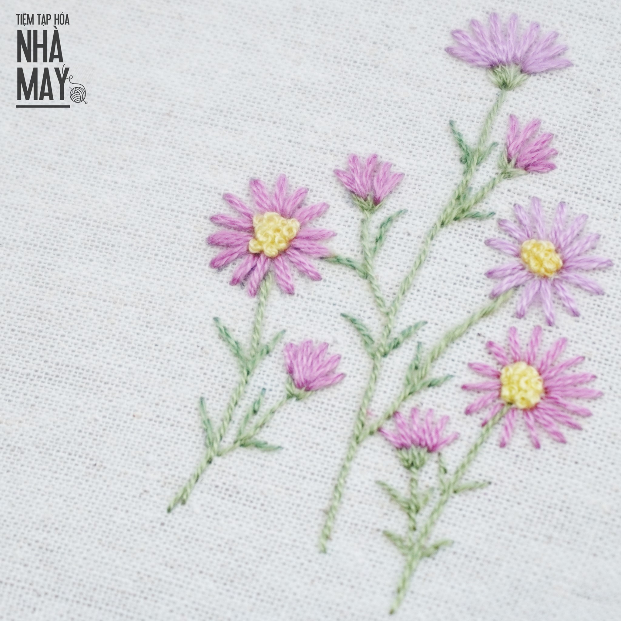 - Vải tập thêu: Tiệm sử dụng vải linen để thêu. Đối với người mới làm quen với thêu thùa thì nên chọn vải thô mộc, với độ cứng và sợi vải lý tưởng cho việc tập thêu dễ dàng và tiện lợi nhất. Bạn xem vải thô mộc tại https://tiemtaphoanhamay.vn/vai-tho-moc-theu-tay