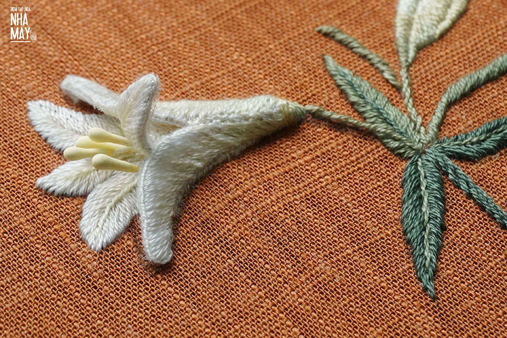 Hướng dẫn thêu hoa loa kèn dạng 3D bằng mũi đâm xô (có mẫu in)
