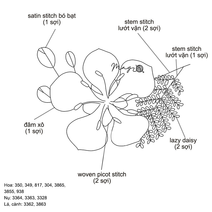 Hoà chung bầu không khí nhà nhà thêu hoa phượng thì MAY cũng góp thêm 1 kiểu thêu hoa nửa 3D để mọi người có thêm sự lựa chọn trong cách thêu nha!