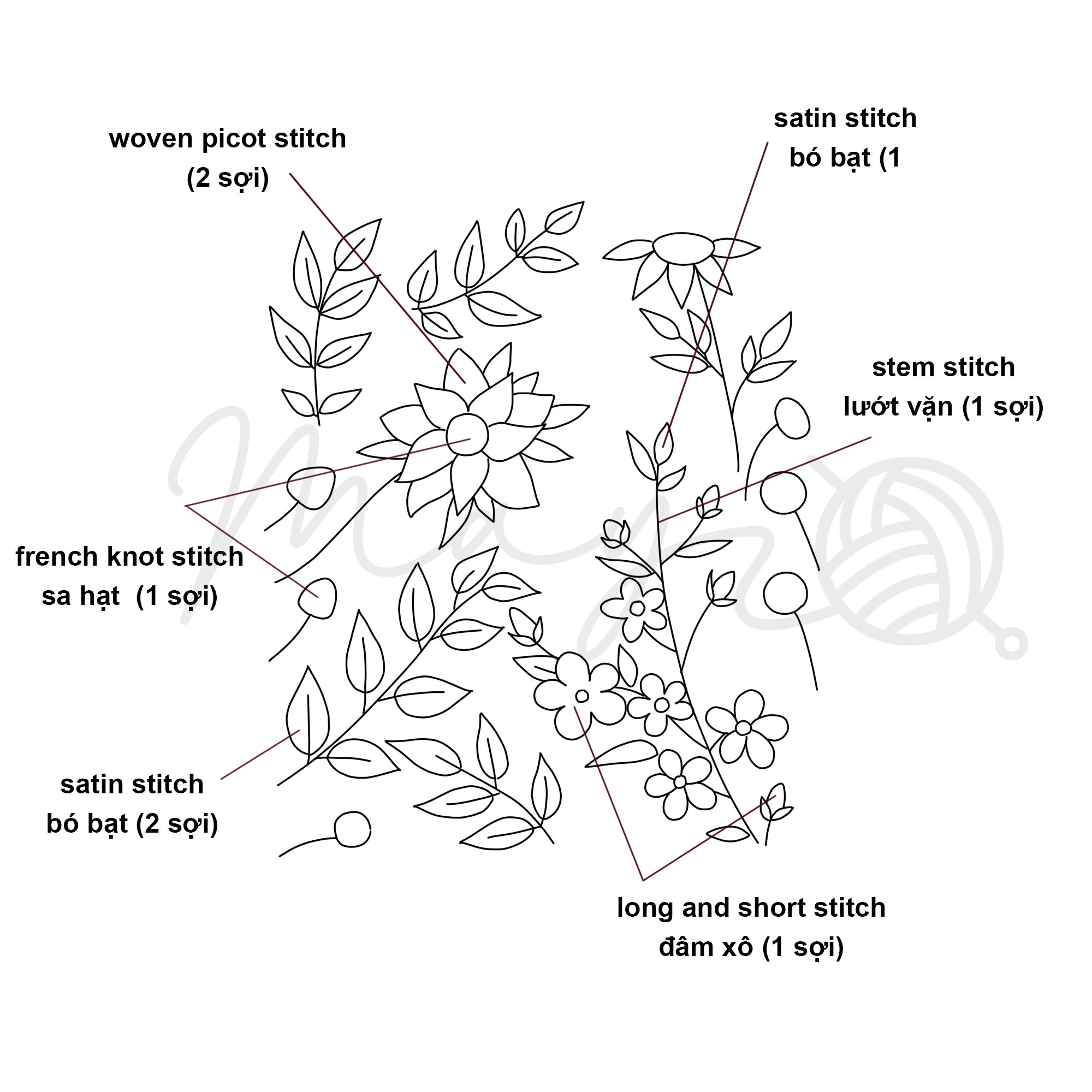 Hướng dẫn thêu hoa trên nền vải nâu (có mẫu in)