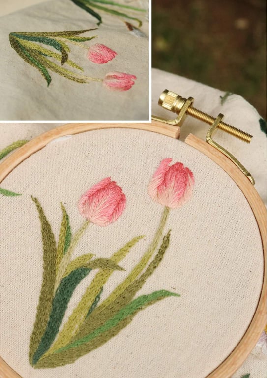 Tulip là một trong những loài hoa rất xinh xắn để thêu, lại toàn những mũi cơ bản thôi!