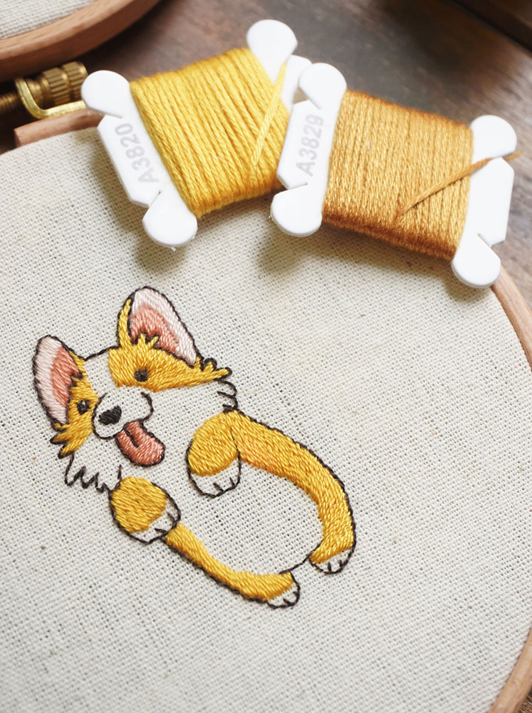 Hướng dẫn thêu nhanh chú chó Corgi đơn giản (có mẫu in)