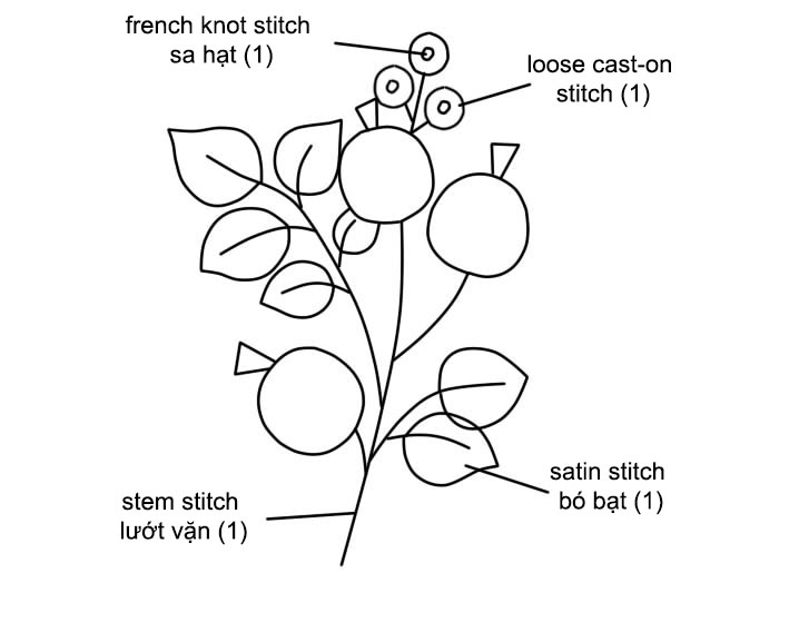 Hướng dẫn thêu quả nổi cực kì đơn giản (có mẫu in)