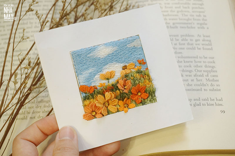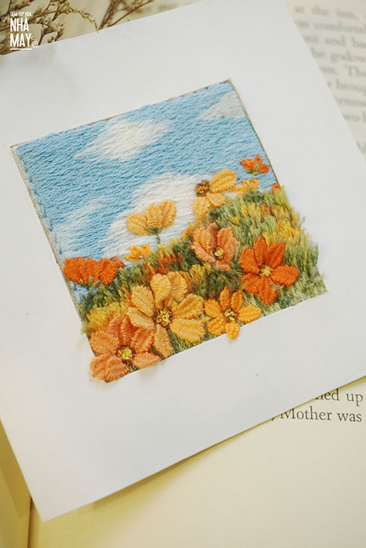 Hướng dẫn thêu thiệp hoa rực rỡ (có mẫu in)