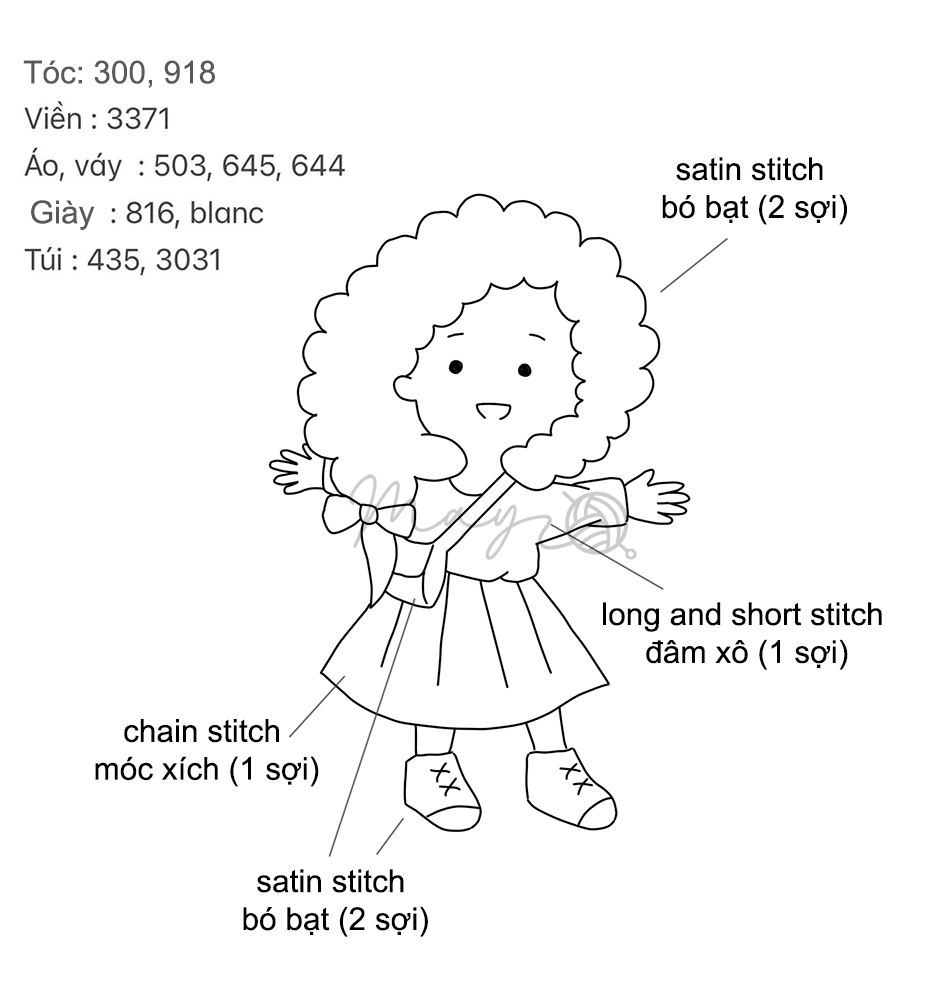 Hướng dẫn thêu thùa và tạo hình tóc xoăn đơn giản (có mẫu in)
