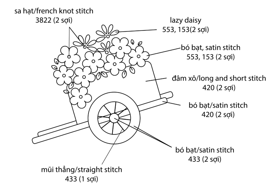 Hướng dẫn thêu xe hoa bằng mũi đâm xô