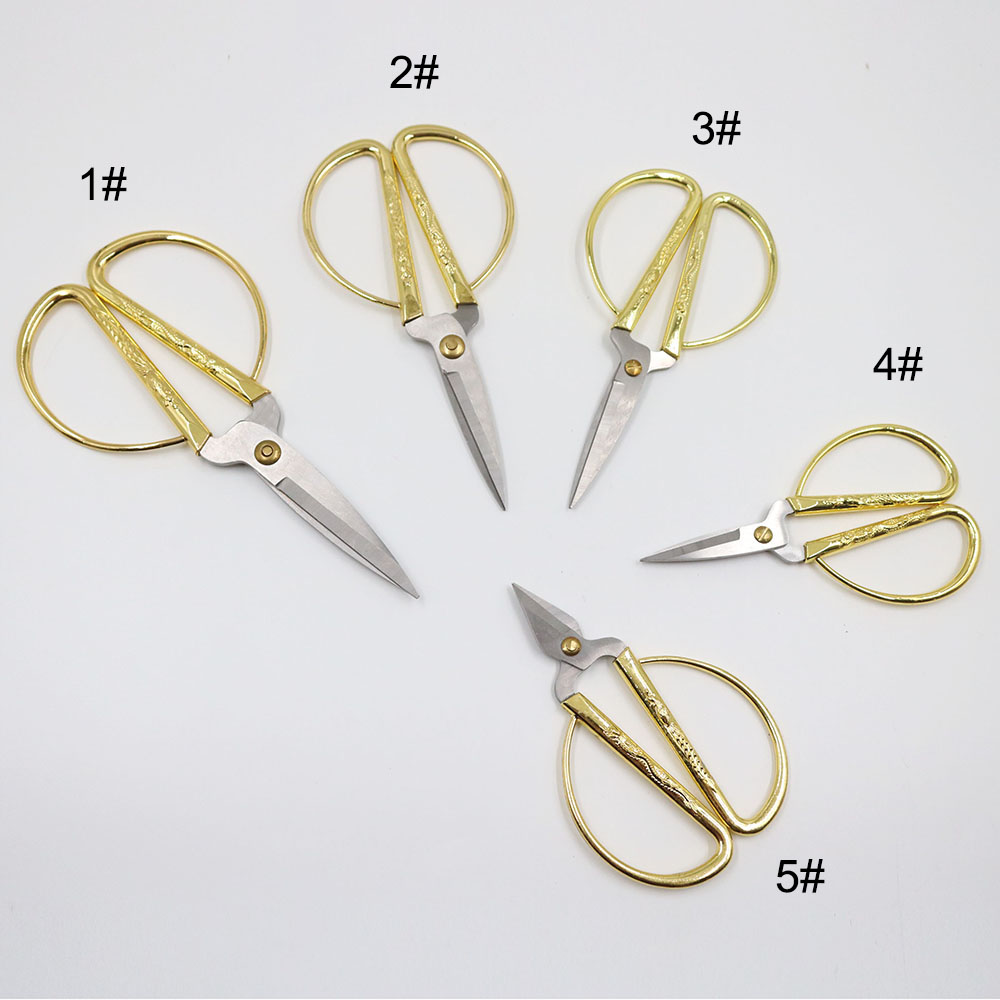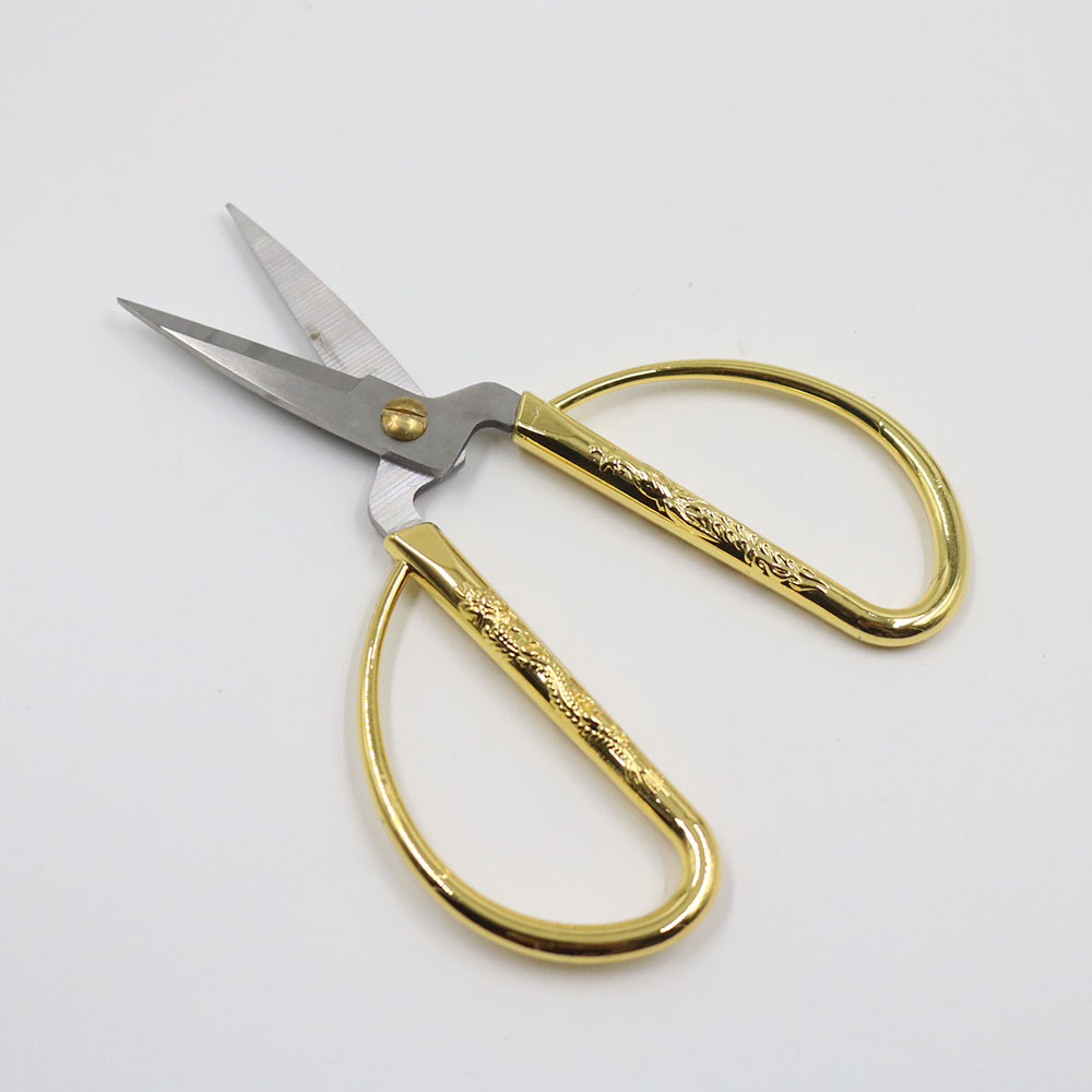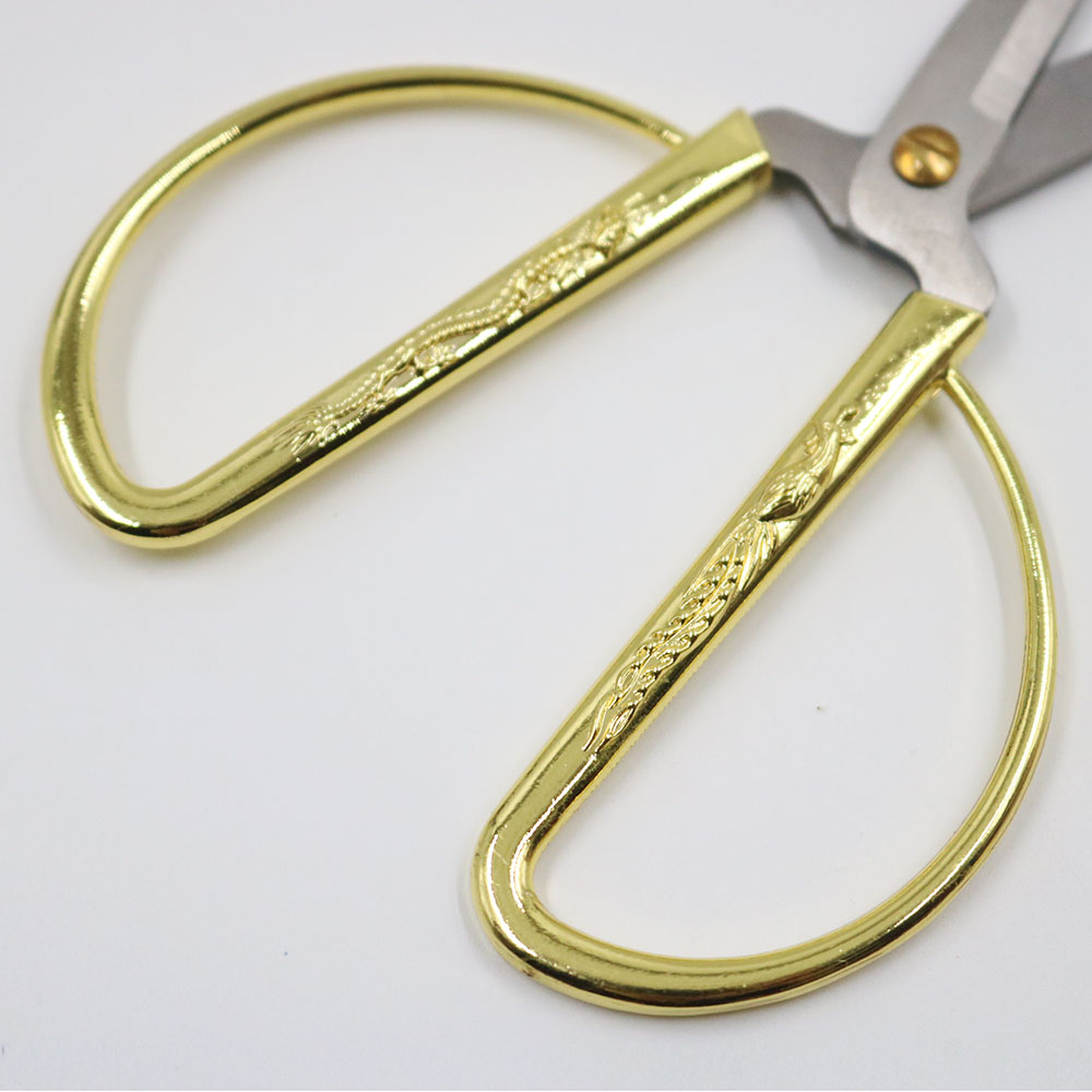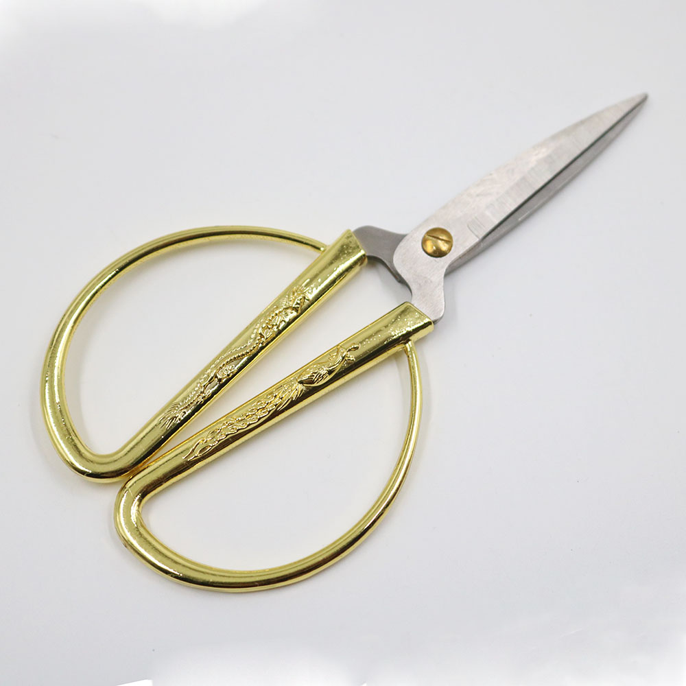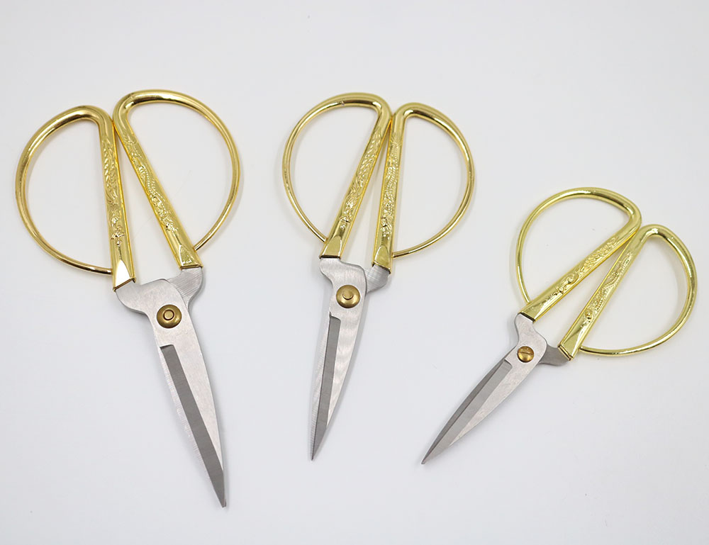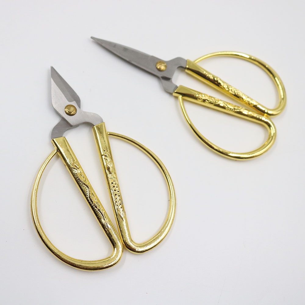 Kéo cắt may chất liệu kim loại, cán mạ vàng có hình rồng phượng. Kéo có nhiều kích cỡ khác nhau ứng dụng cho cắt vải, cắt chỉ, cắt ruy băng...