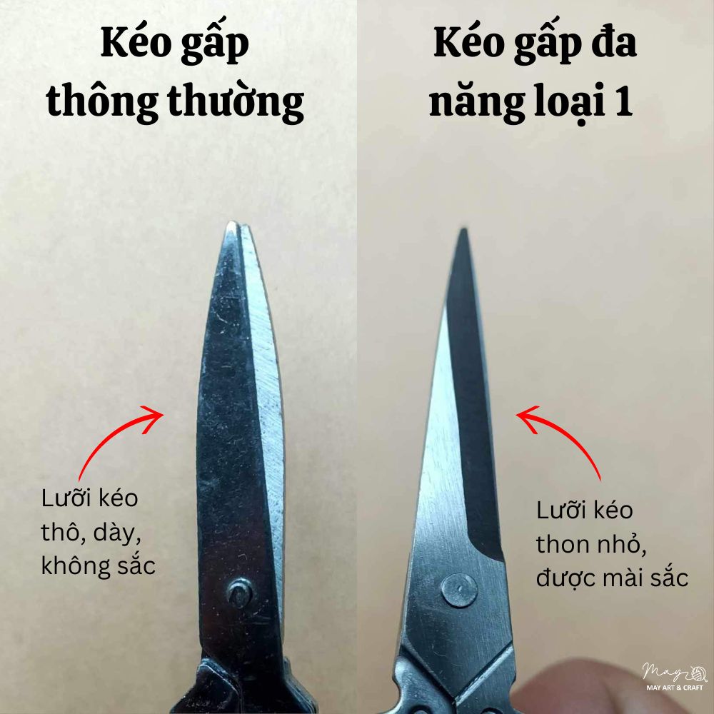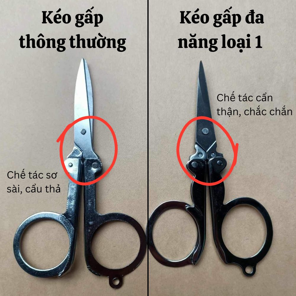 Kéo gấp đa năng cao cấp loại 1 với lưỡi kéo sắc bén, nhỏ gọn có thể luồn lách vào những chi tiết nhỏ, ứng dụng trong cắt chỉ khi may vá, thêu thùa.