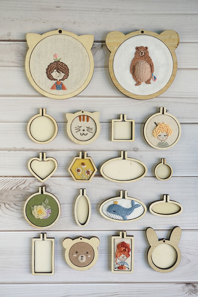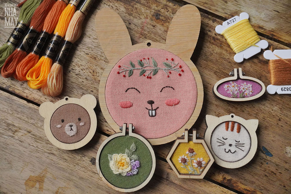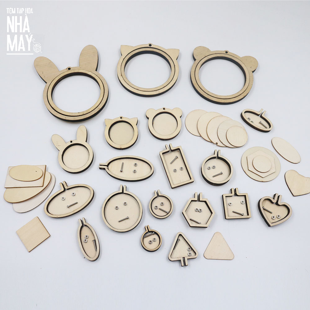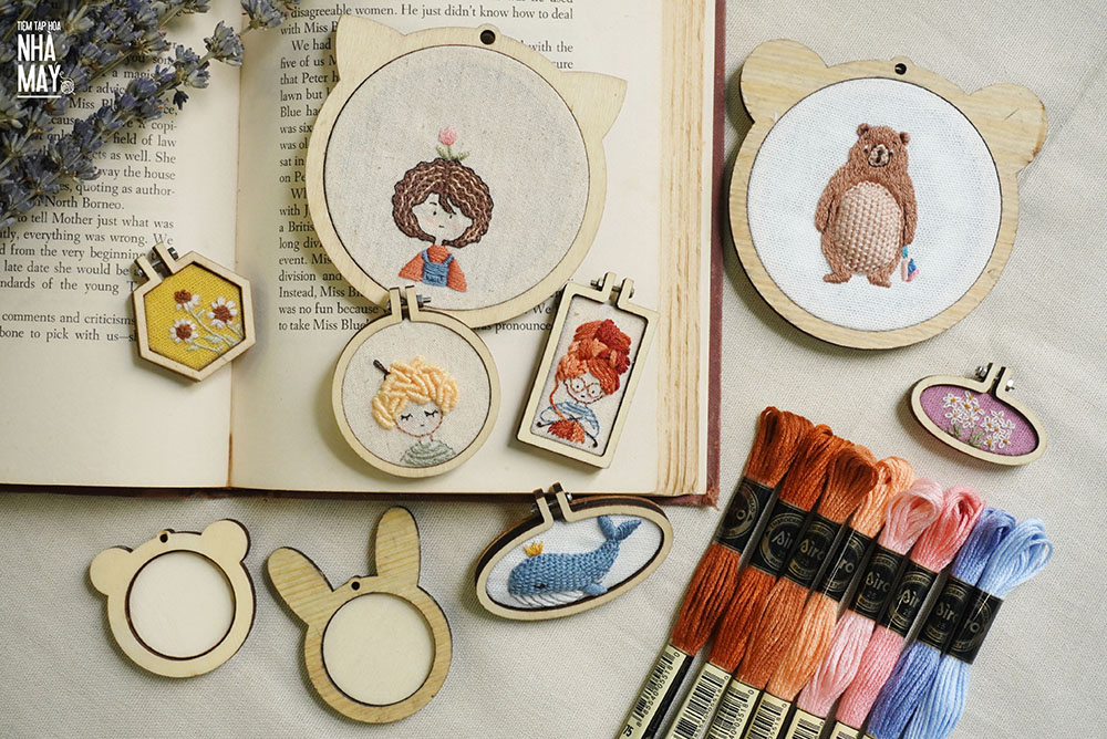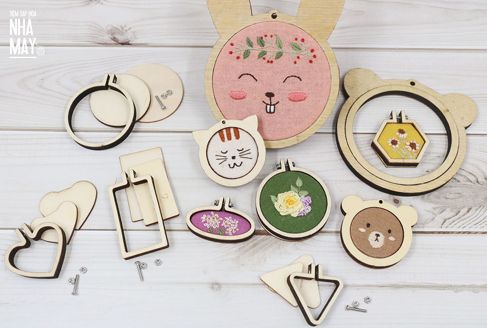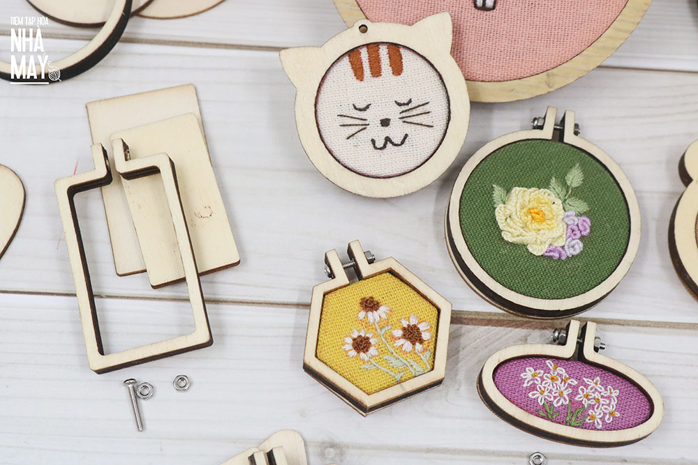 Khung thêu mini được làm từ gỗ, cứng cáp, màu sắc vintage tự nhiên, hình dáng và kích thước đa dạng.