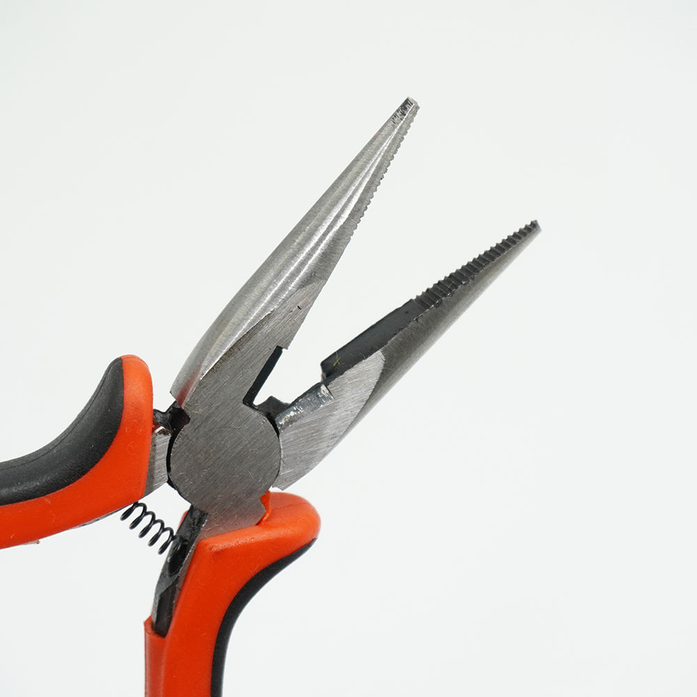 Kìm dài 14cm, mũi dài 5.5cm, đầu mũi rộng 2mm giúp luồn lách vào các chi tiết nhỏ, thuận tiện sử dụng. Cán kìm bằng cao su.