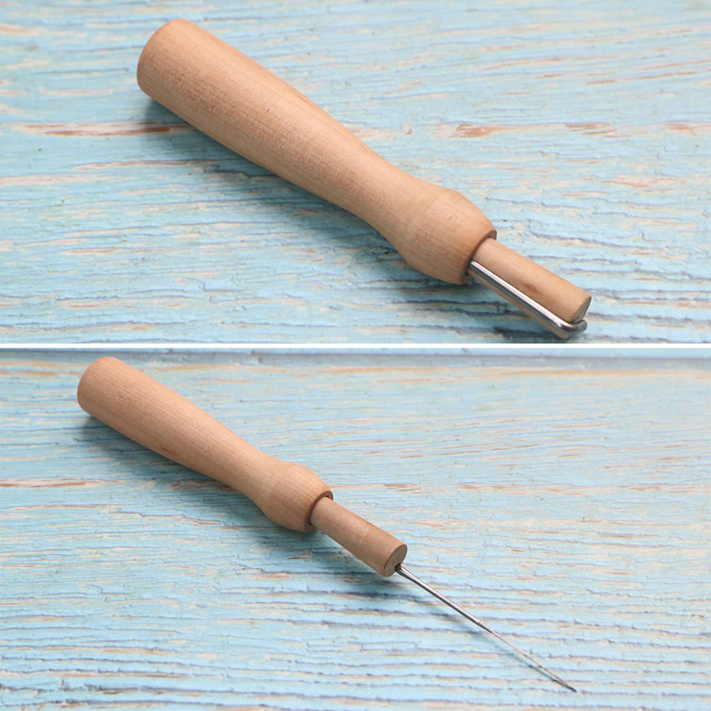 Kim chọc len chất liệu gỗ, nhỏ gọn, chắc chắn, dễ dàng sử dụng và thay kim.