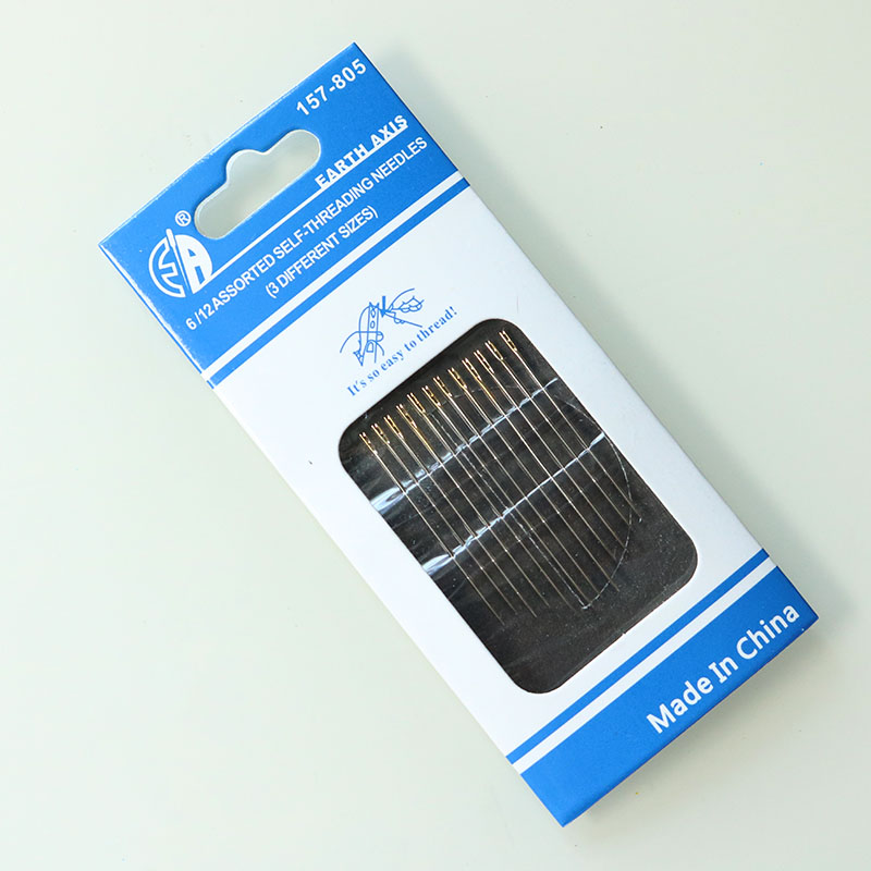 Bộ kim 12 chiếc kim thêu đầu vàng 3 cỡ: 3,6cm, 3,8cm và 4,2cm.