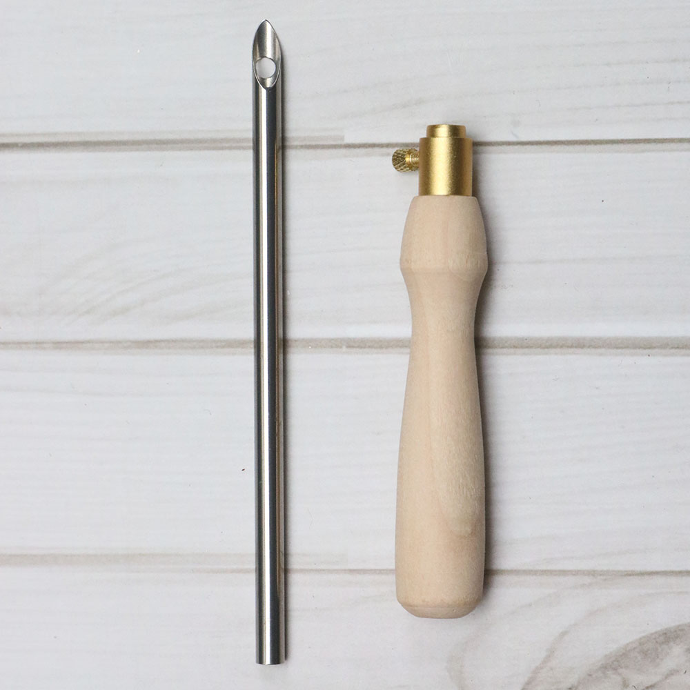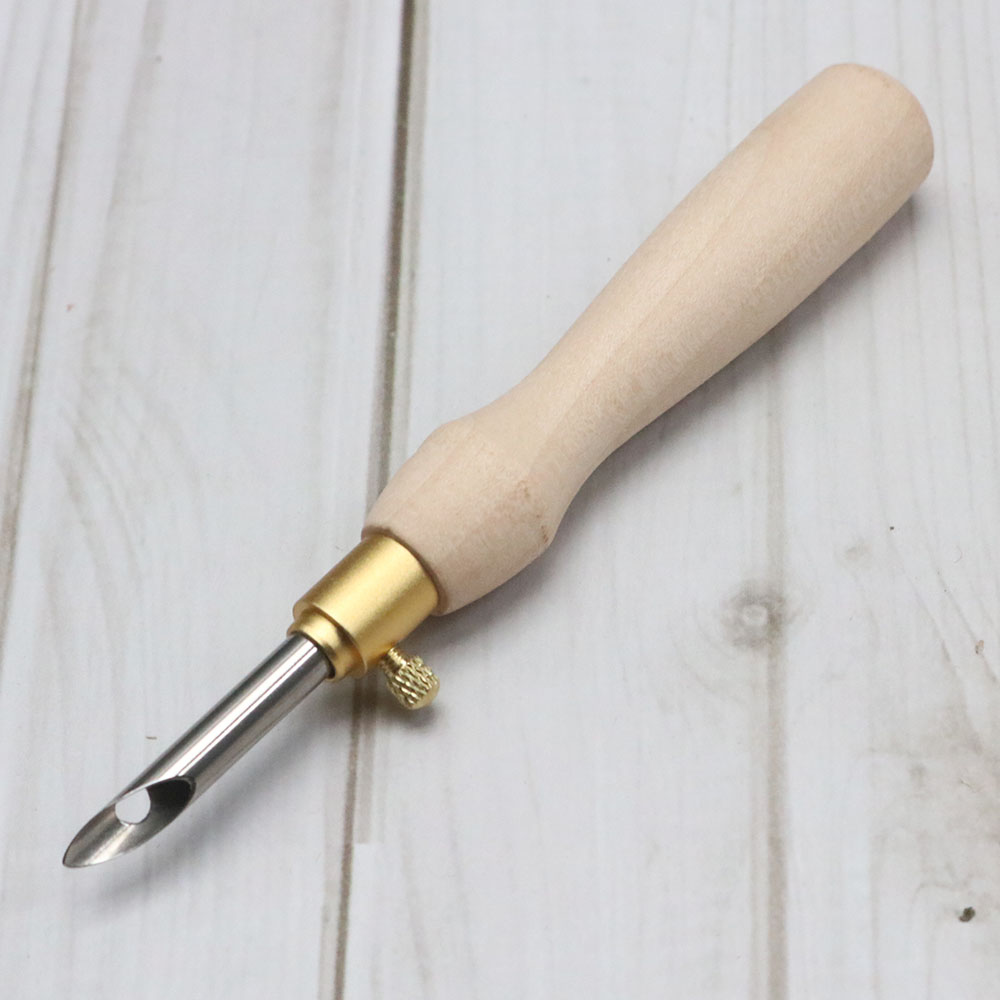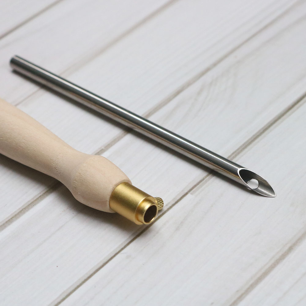 Kim có cán bằng gỗ dài 8cm, có núm điều chỉnh độ dài của kim.