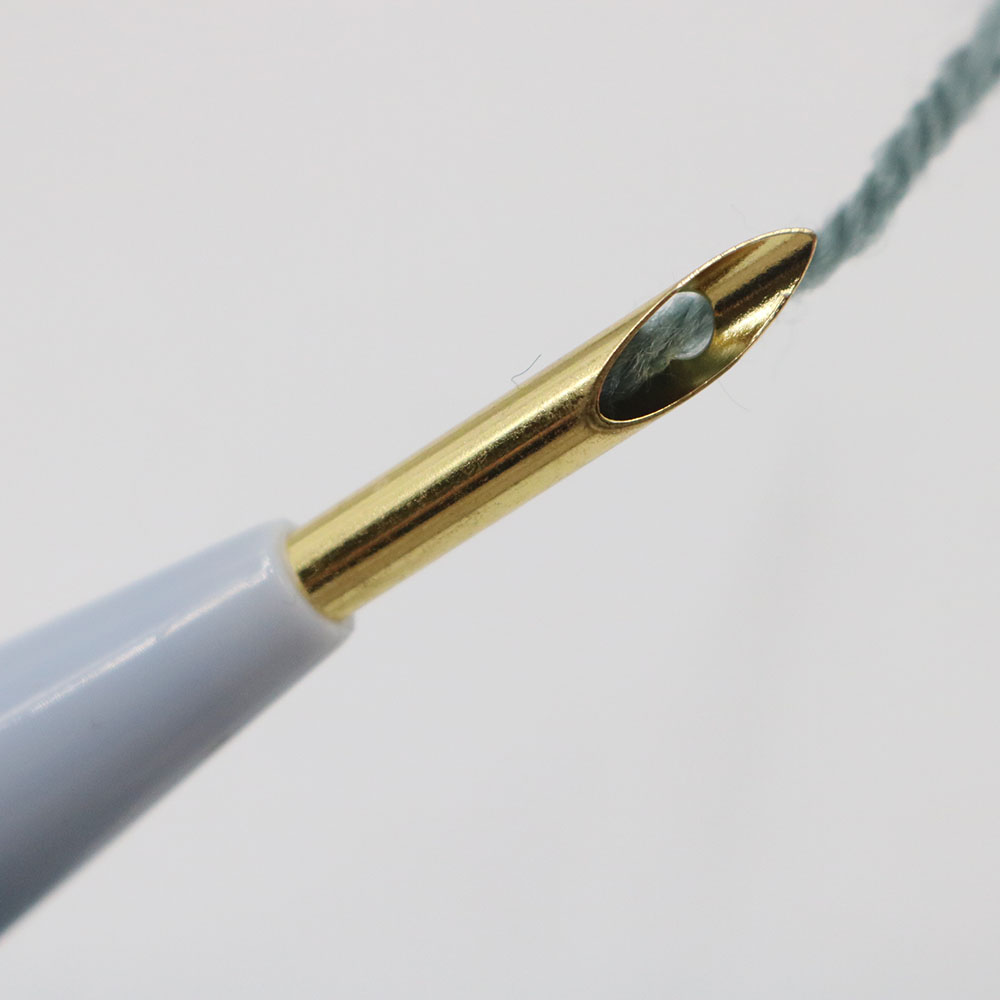 Kim thêu len có cán bằng nhựa ABS cứng cáp, với 4 nấc điều chỉnh độ dài kim tùy ý, mũi kim mạ vàng. Kim kèm theo 1 dụng cụ xỏ len.
