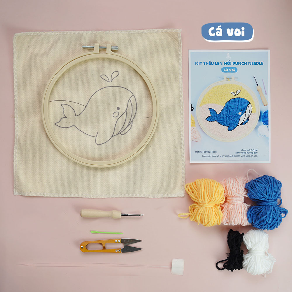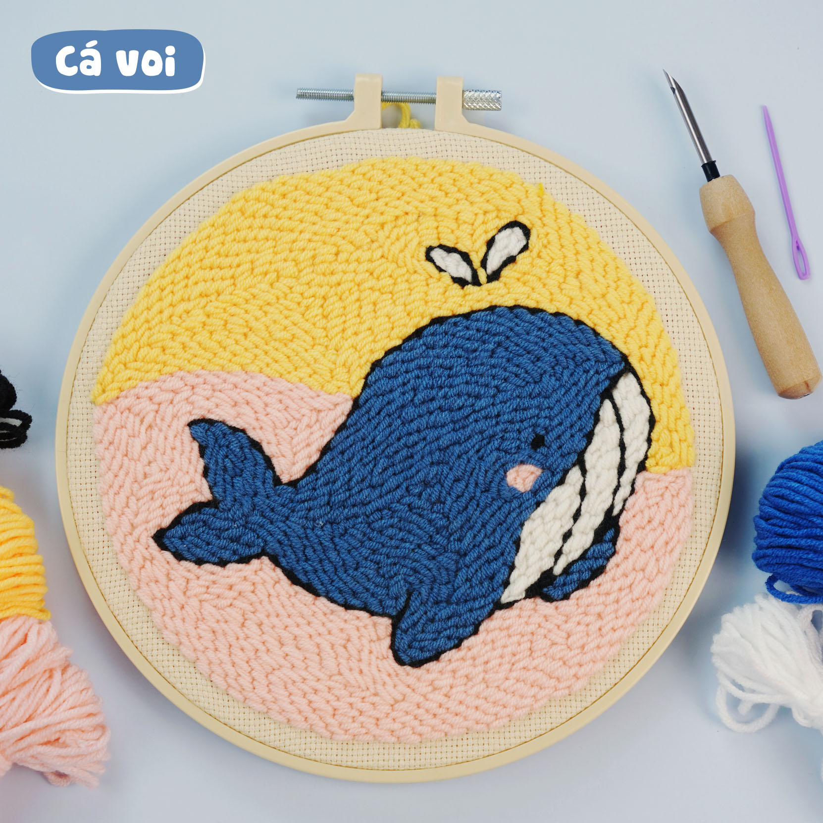 Hướng dẫn thêu tranh punch needle mẫu cá voi:
