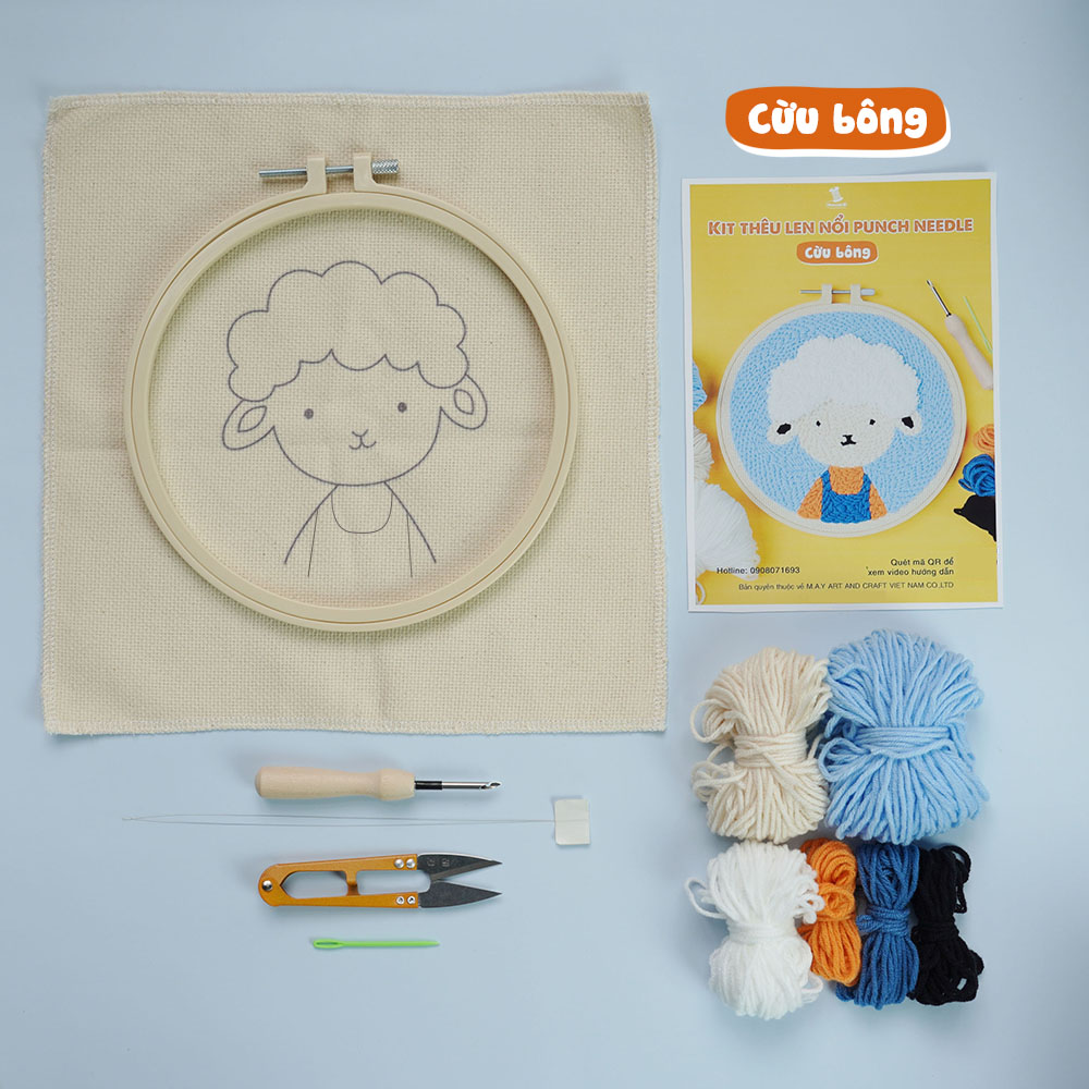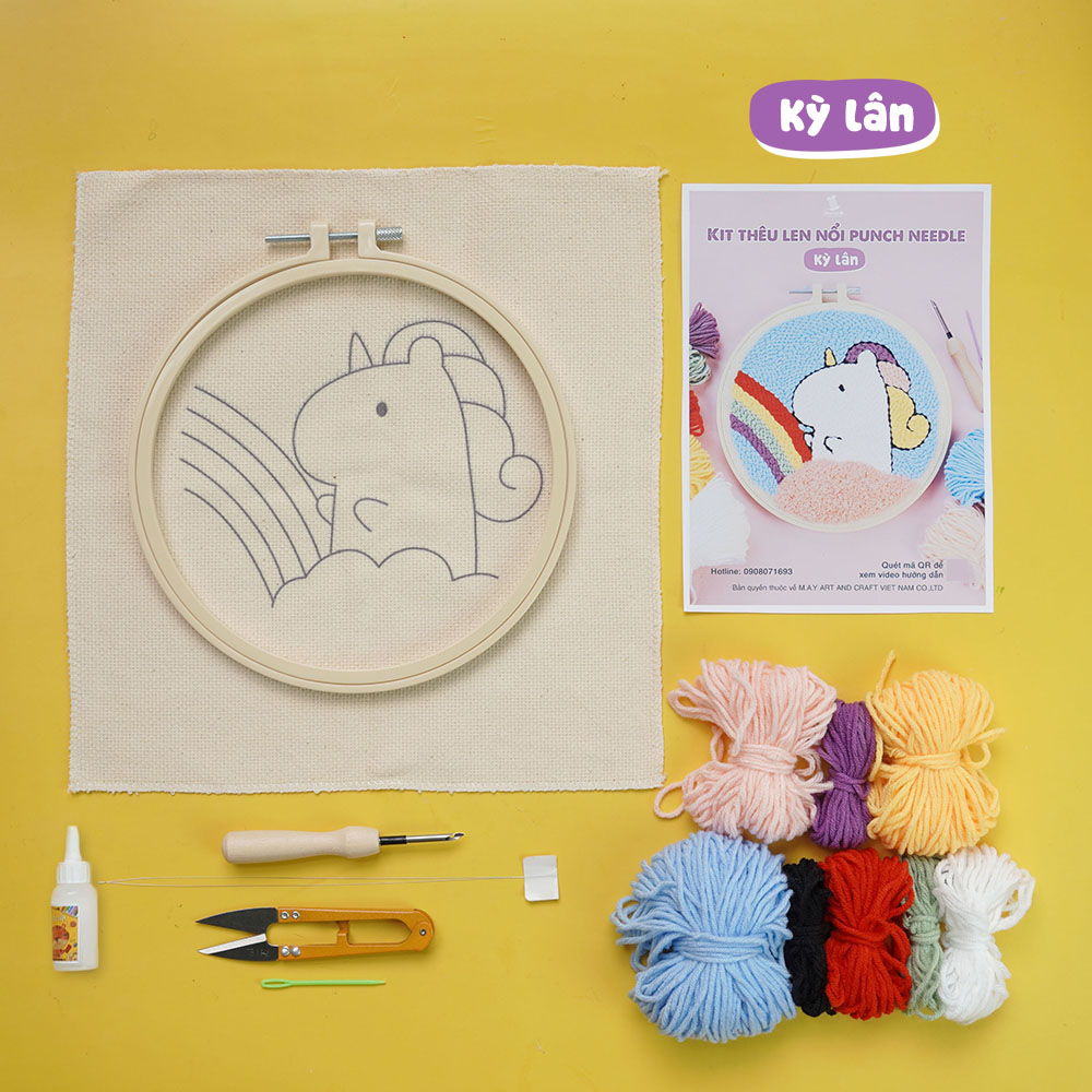 Kit thêu tranh ứng dụng kỹ thuật thêu len nổi Punch needle, gồm 3 kỹ thuật chính: thêu sử dụng mặt chìm, thêu sử dụng mặt xù và cắt bông xù.